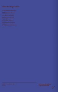 Le septième titre de la collection Digressions est consacré à Myriam Lefkowitz et fait suite à une recherche menée simultanément à la Ferme du Buisson et à If I Can't Dance, I Don't Want to Be Part of Your Revolution à Amsterdam. Myriam Lefkowitz revient sur l'ensemble de son travail à travers la distinction entre projet et pratique, l'importance du toucher et de la réciprocité, l'ambiguïté du care, et la plasticité de la perception. L'artiste y aborde également les liens qui se tissent entre les corps et les lieux à travers le « sentir », ainsi que sa pratique de l'expérimentation et de l'engagement dans des relations impliquant l'utilisation du toucher.