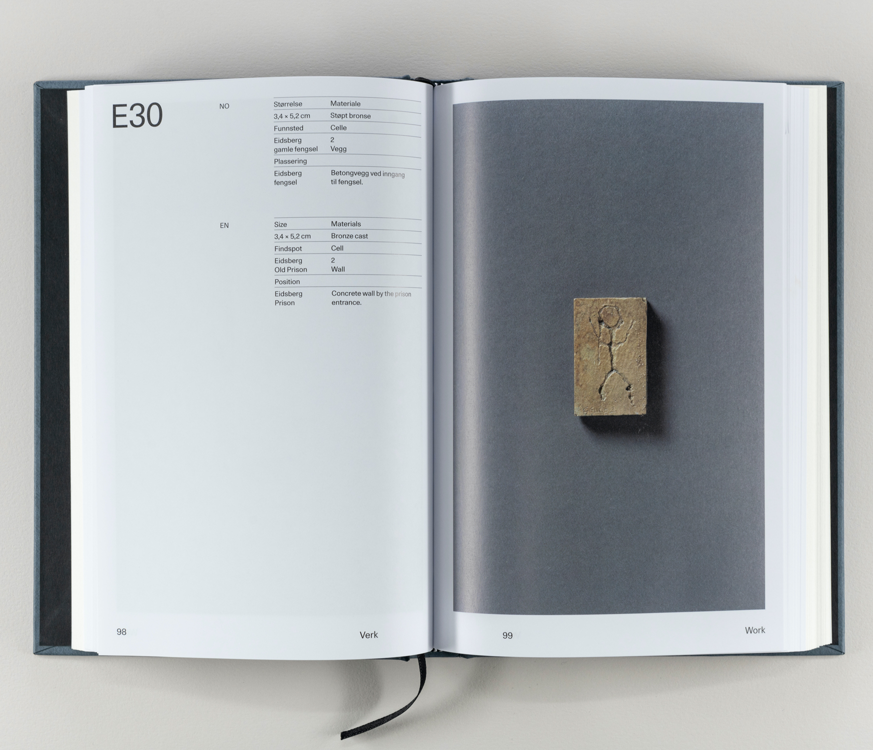 La commande pour Public Art Norway a coïncidé avec le projet de doctorat de Bugge à l'Académie des Arts d'Oslo (KHIO), dans le cadre duquel elle avait déjà initié un atelier avec les détenus de la prison d'Oslo. En plus de servir de guide pour les 76 moulages en bronze encastrés dans les murs des deux prisons, ce livre contient des textes de détenus, écrits en collaboration avec Sara Orning et Ingvild Hellestrand de Monsternettverket, ainsi qu'un texte de l'artiste.