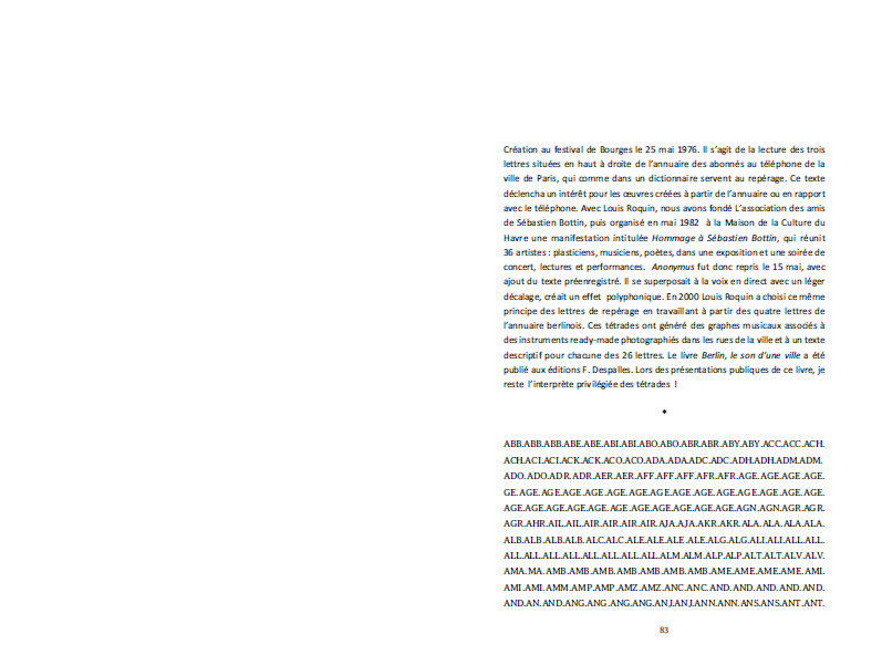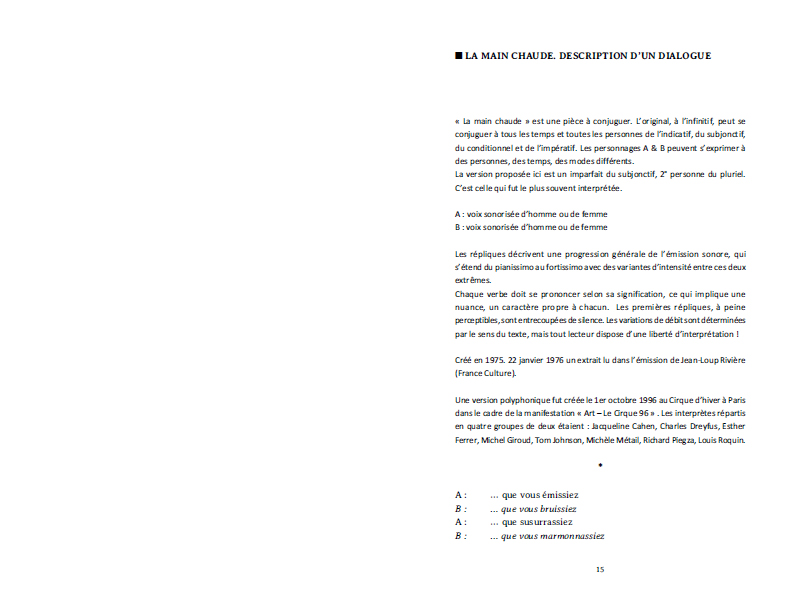 Ce livre rassemble les textes (inédits ou aujourd'hui introuvables) conçus comme partitions des publications orales de Michèle Métail depuis 1973.