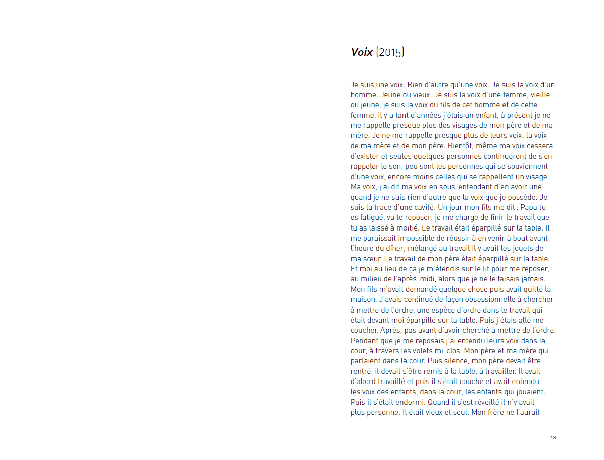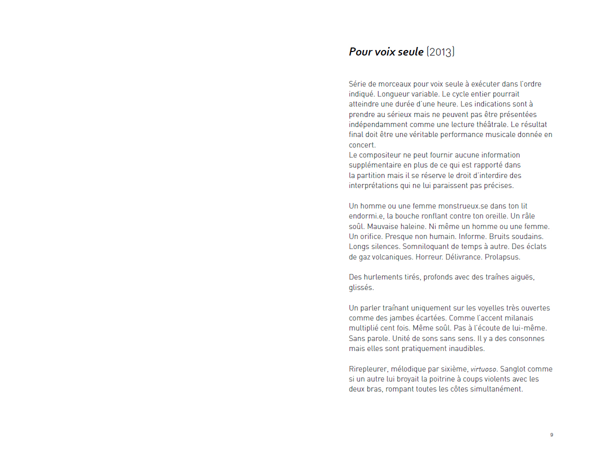 Une collection de textes d'Alessandro Bosetti, entre théorie, poésie et partition, qui respirent tous de concert avec une série de projets sonores et se concentrent souvent sur la voix sous différents angles et perspectives.