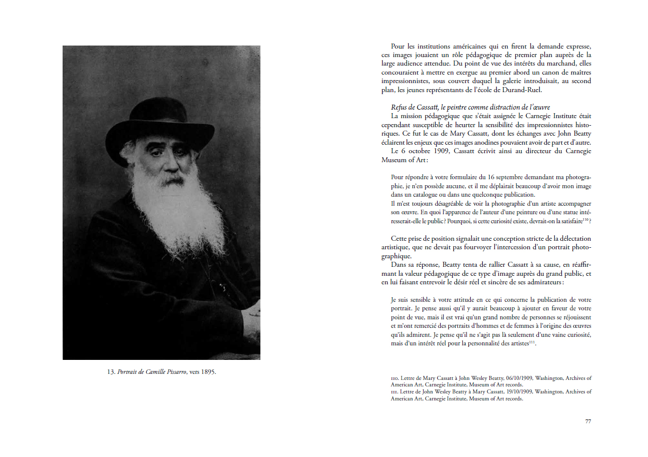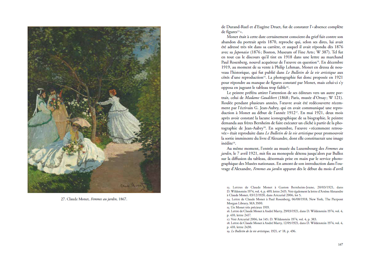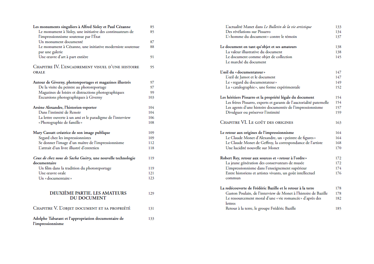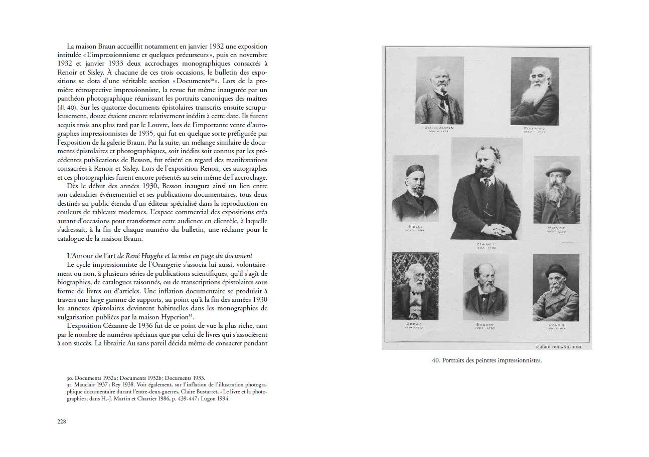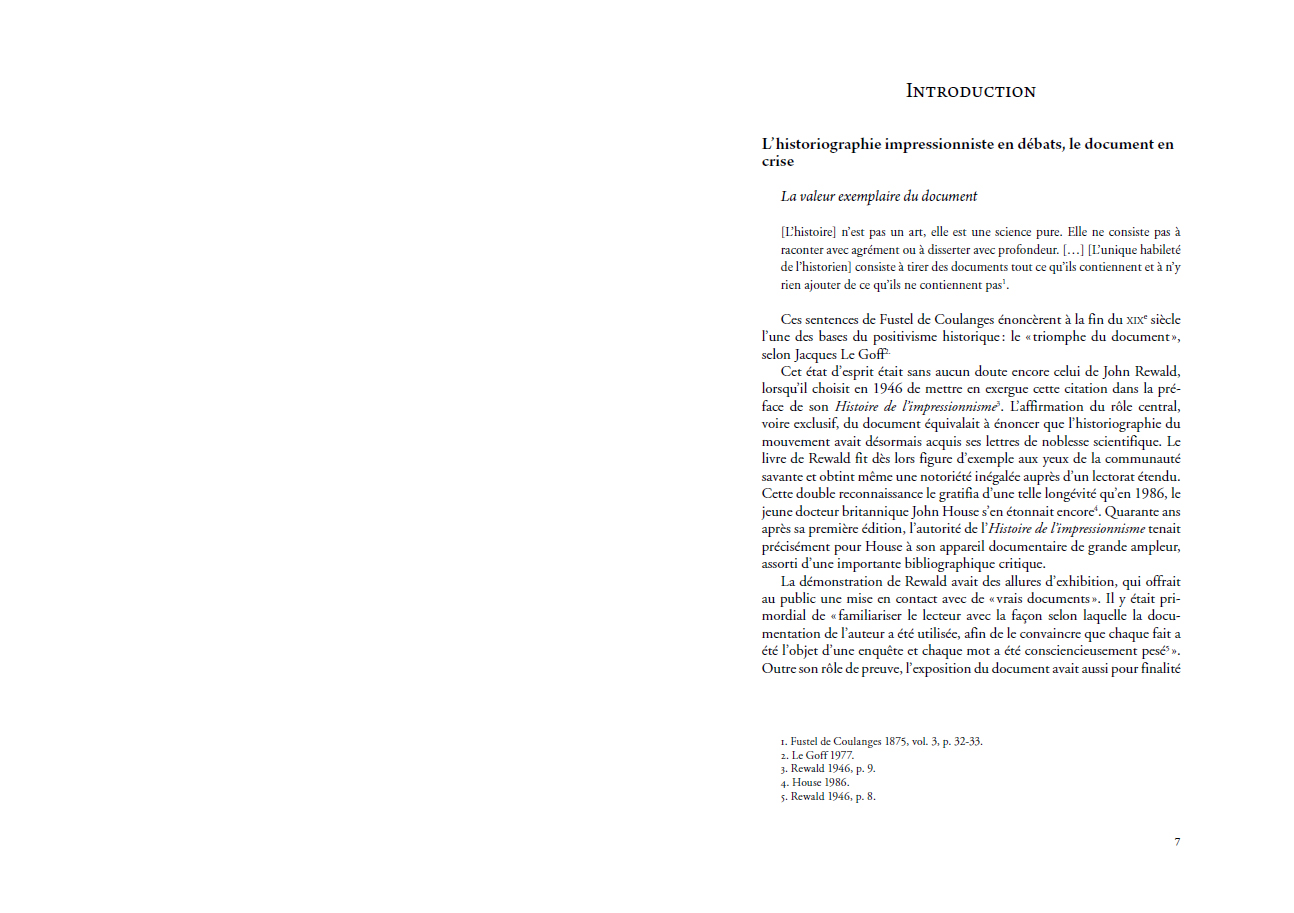 Pour l'historien, le monument est un objet d'étude et le document un moyen d'investigation. Entre 1900 et 1939, la glorification de l'impressionnisme par l'histoire s'est ainsi appuyée sur un socle constitué d'archives, de lettres, de photographies, de films, mais aussi d'objets souvenirs, d'immeubles ou encore de sites naturels.