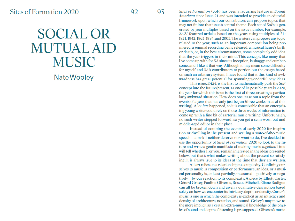 Revue fondée en 2012 par Nate Wooley, proposant des entretiens et des essais approfondis, Sound American entend ouvrir les portes de la musique expérimentale à un public élargi – partant de la conviction que toute musique s'adresse au plus grand nombre –, en créant des passerelles intellectuelles, sociales et émotionnelles pour relier le public et les artistes.