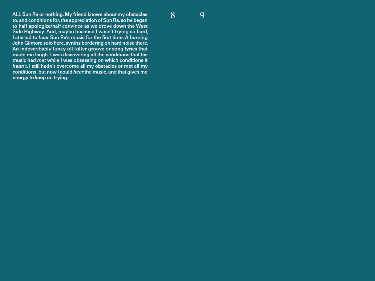 Contributions de Nate Wooley, Jessie Cox, Reg Bloor, Taylor Ho Bynum, Ken Vandermark, Naima Lowe, Luke Stewart, John Corbett, Chris Pitsiokos, Peter Margasak, Audra Wolowiec & Freya Powell, Moor Mother