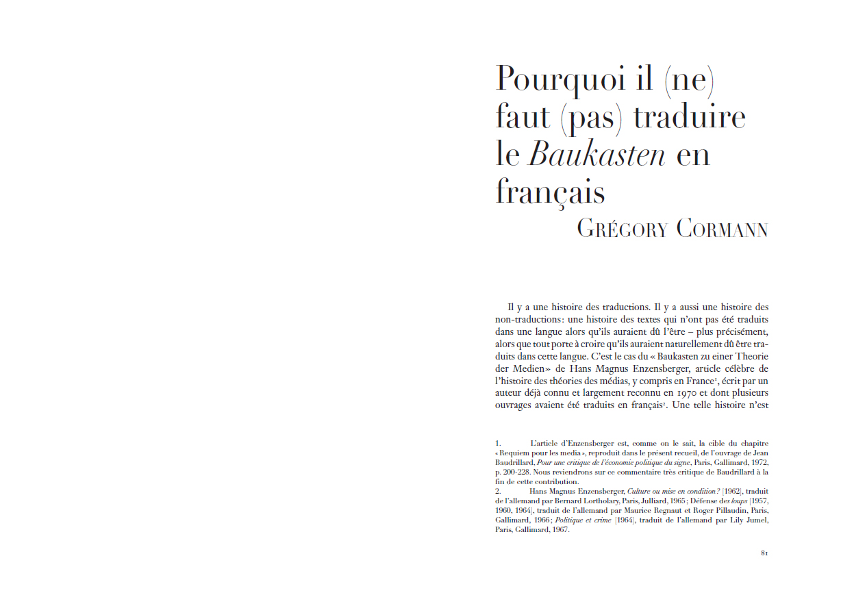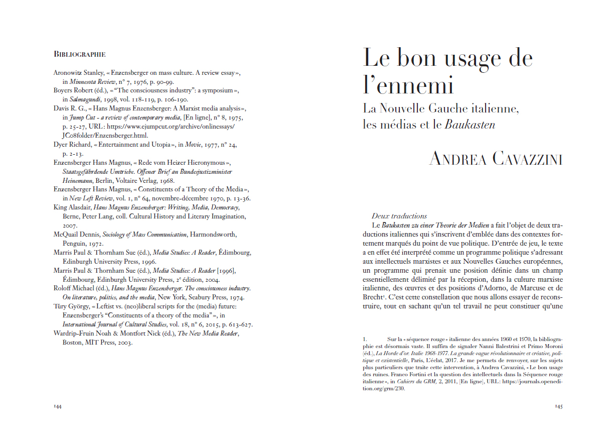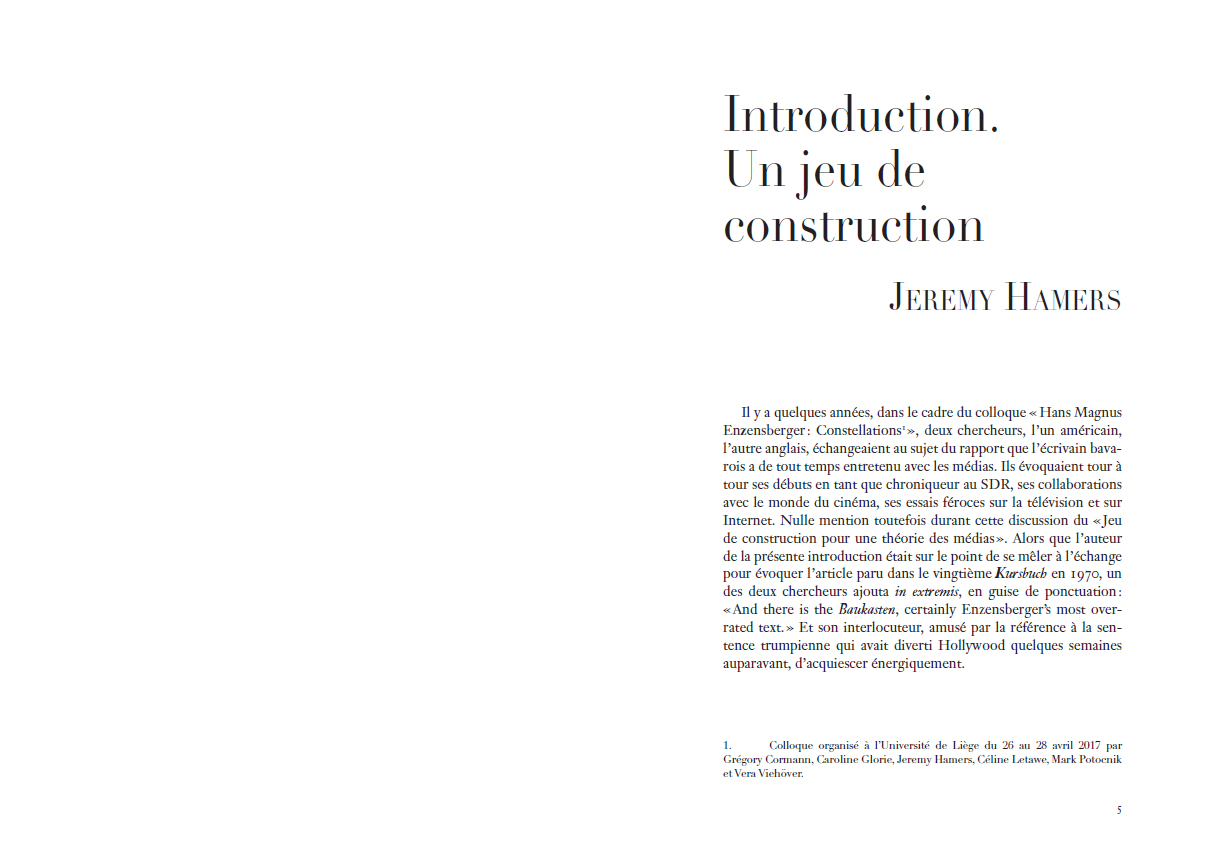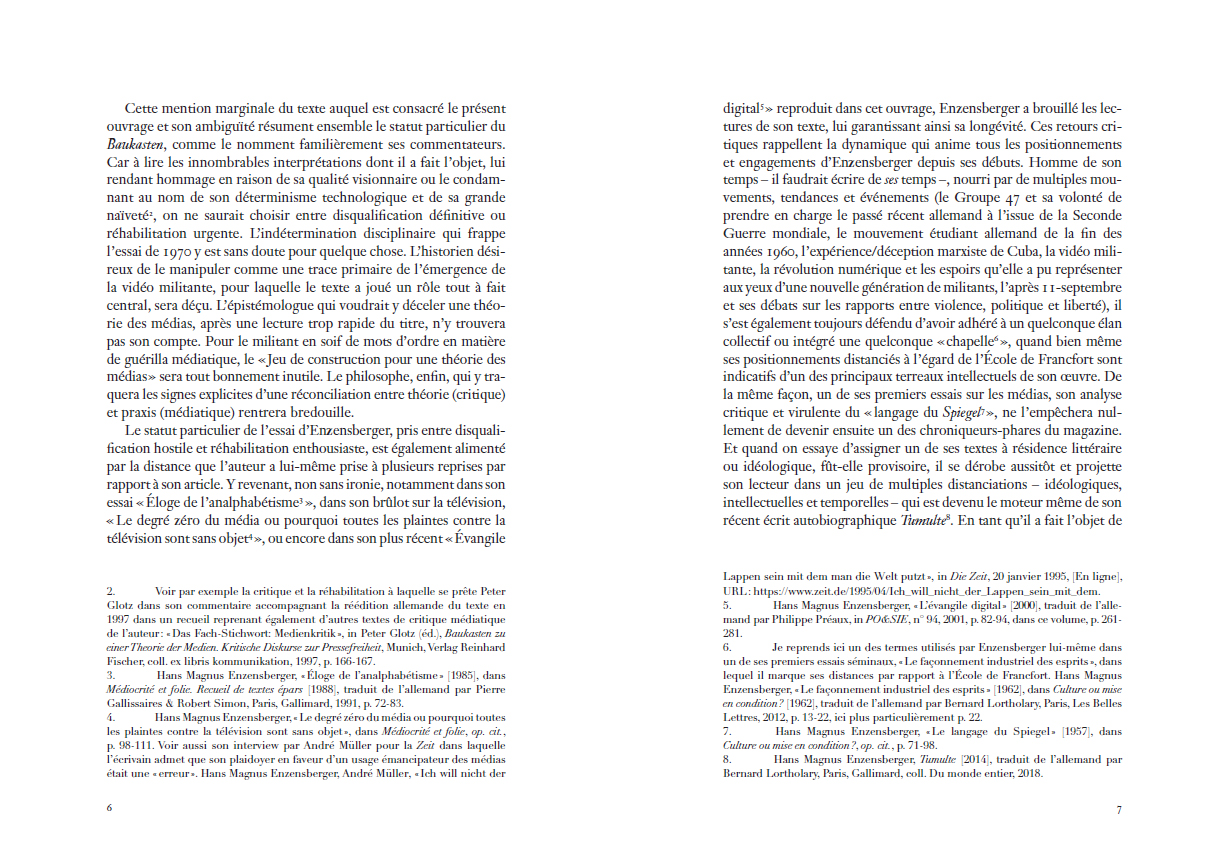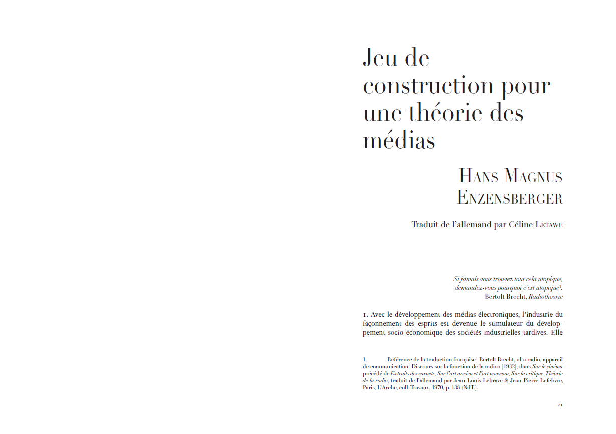 Jeu de construction pour une théorie des médias d'Hans Magnus Enzensberger constitue un évènement éditorial significatif. Depuis son écriture en 1970, le