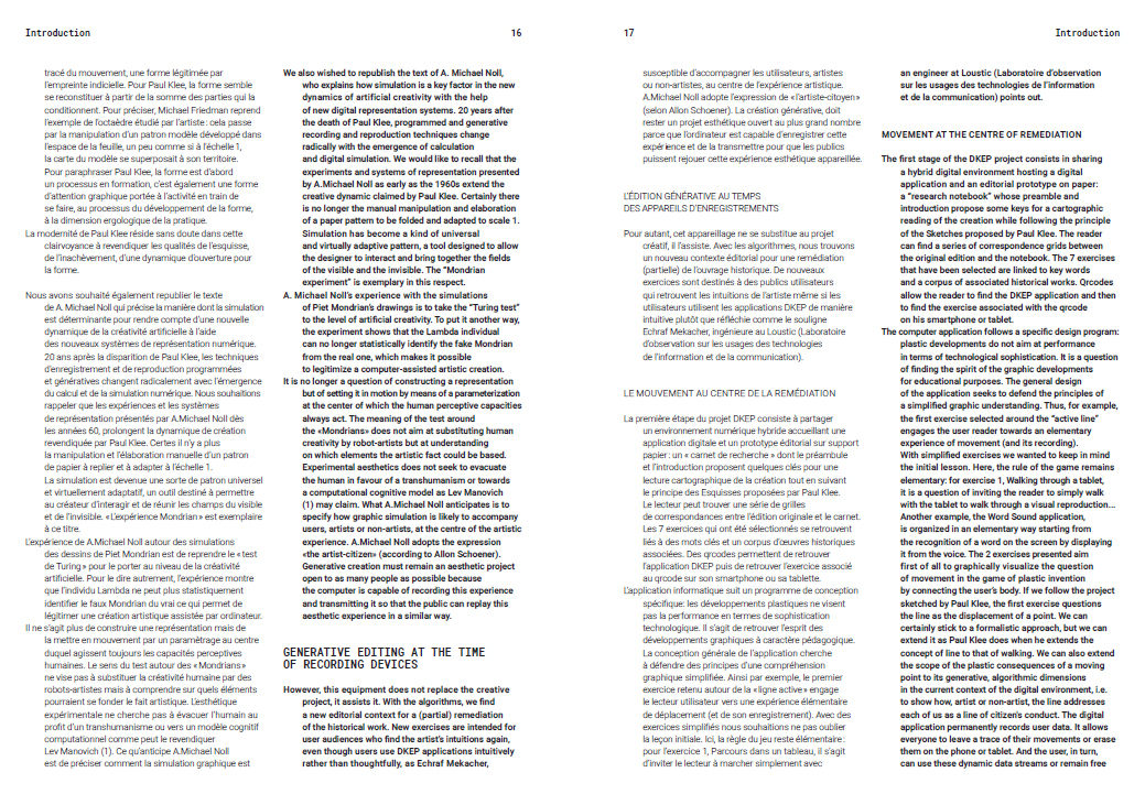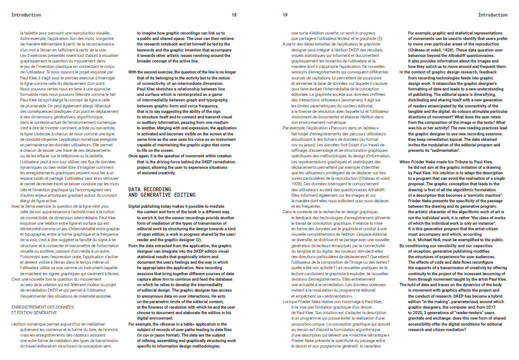 Entre 2017 et 2020, DKEP recherche les filiations possibles avec l'histoire du graphisme génératif et du design d'interaction, conçoit les collaborations entre graphistes et utilisateurs pour conduire une réflexion sur le processus de conception éditoriale du projet.
