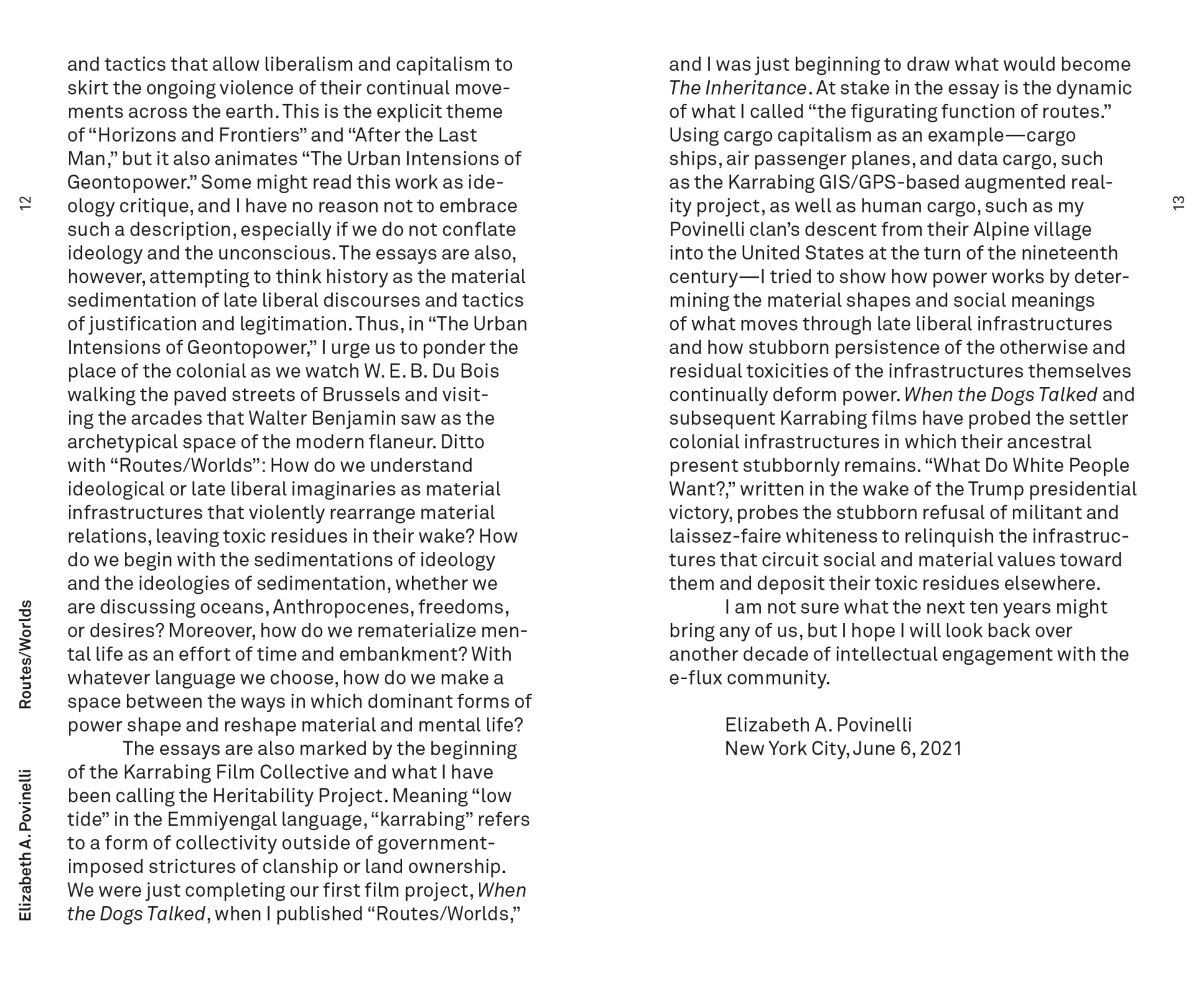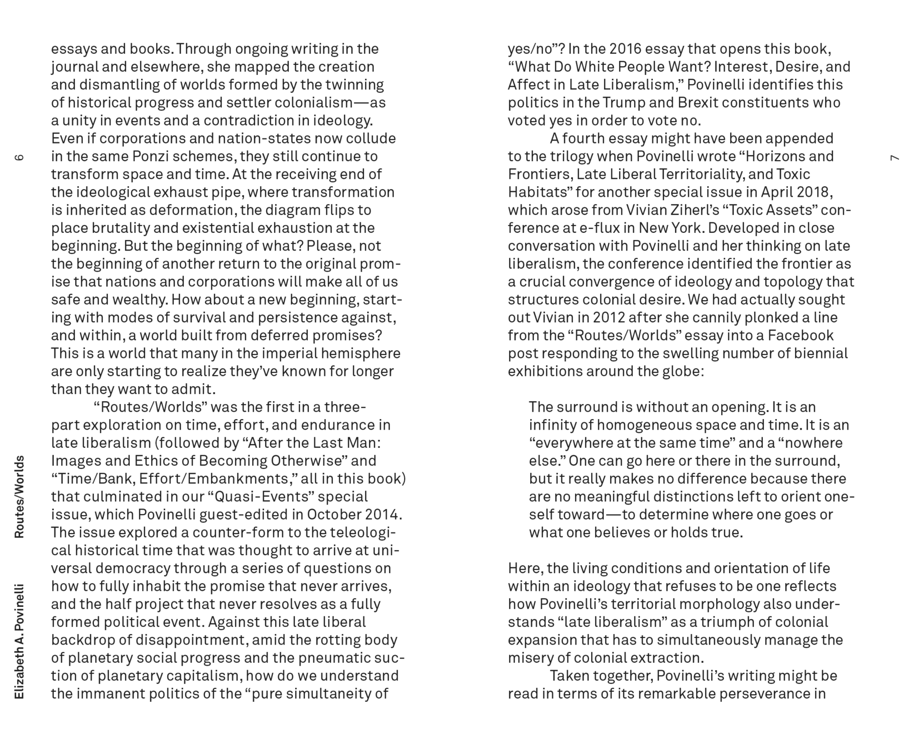 Théoricienne et cinéaste américaine, professeure d'anthropologie et d'études de genre à l'Université de Columbia (où elle a également été directrice de l'Institut de recherche sur les femmes et le genre et codirectrice du Centre d'étude du droit et de la culture), Elizabeth Povinelli est l'auteure de nombreux ouvrages de théorie critique sur le néolibéralisme.