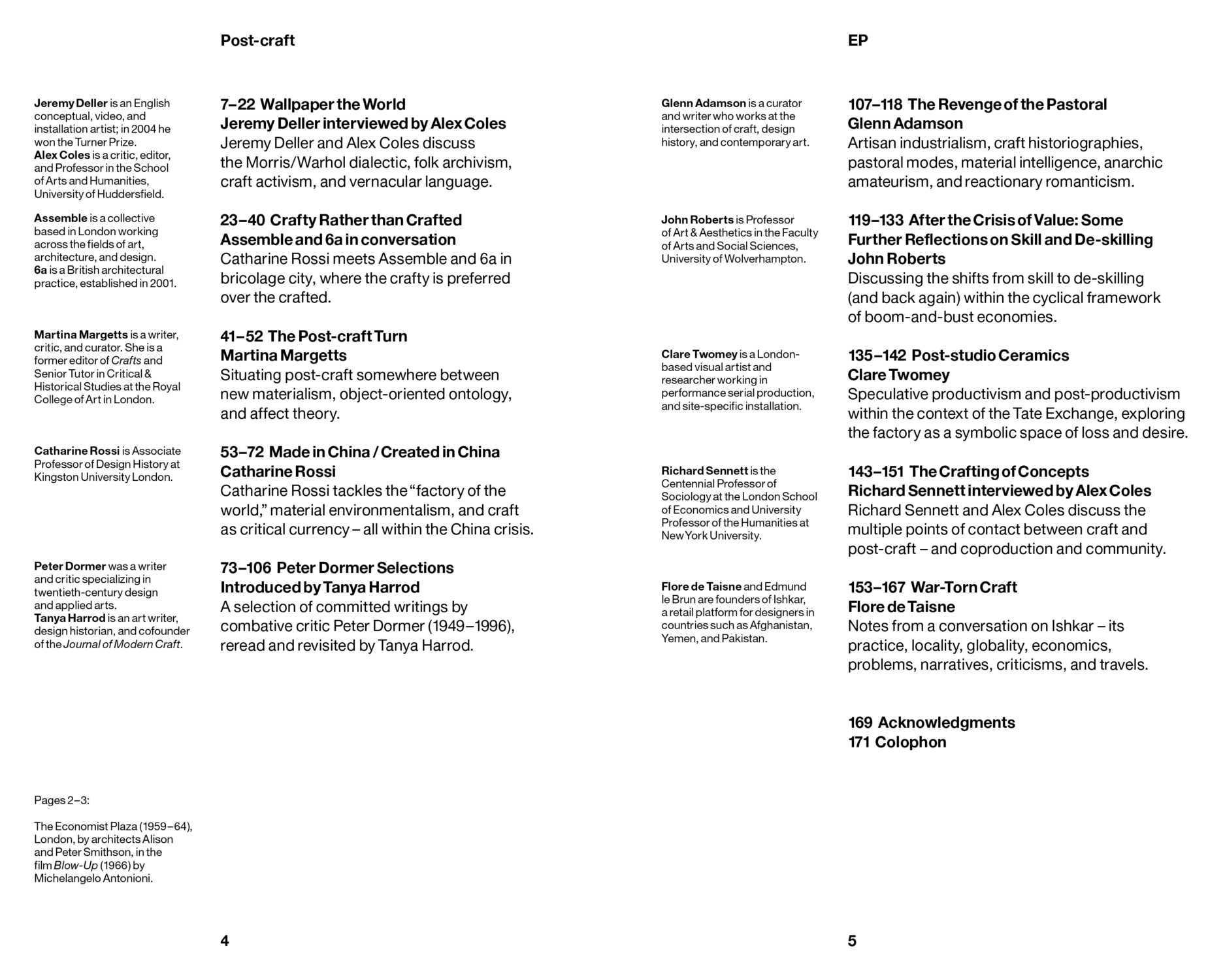 Contributions de Glenn Adamson, Assemble, Jeremy Deller, Peter Dormer, Tanya Harrod, John Roberts, Richard Sennett.