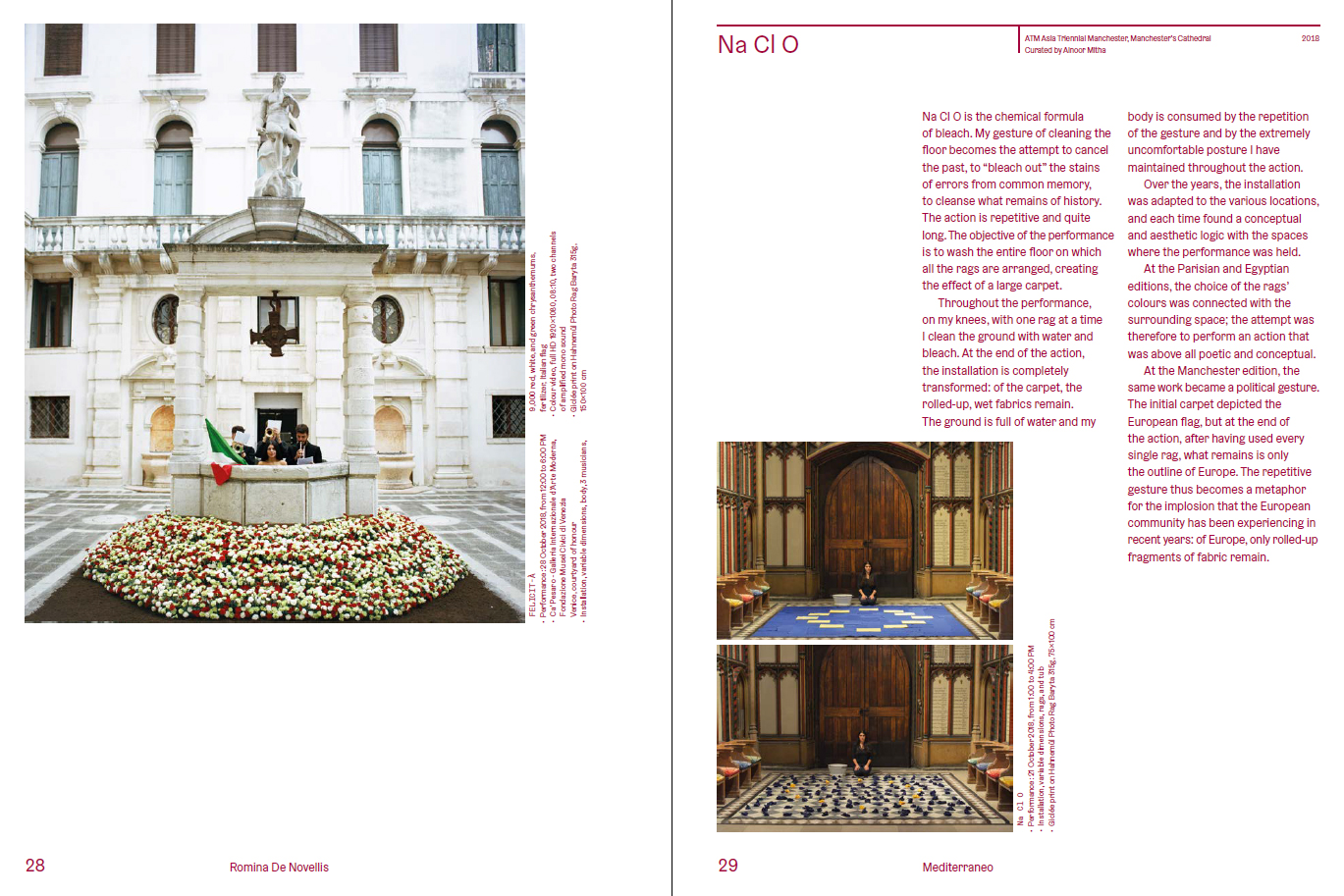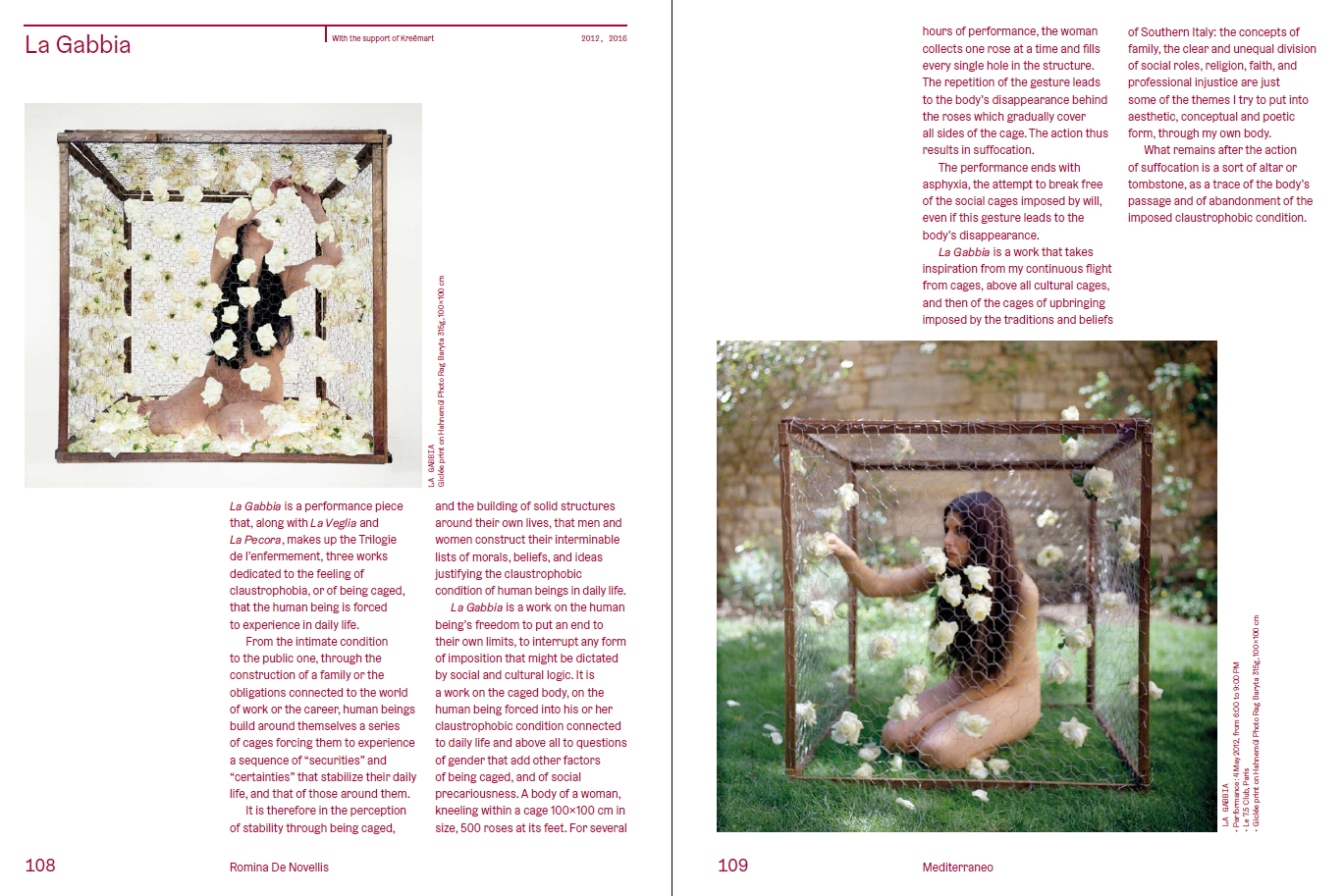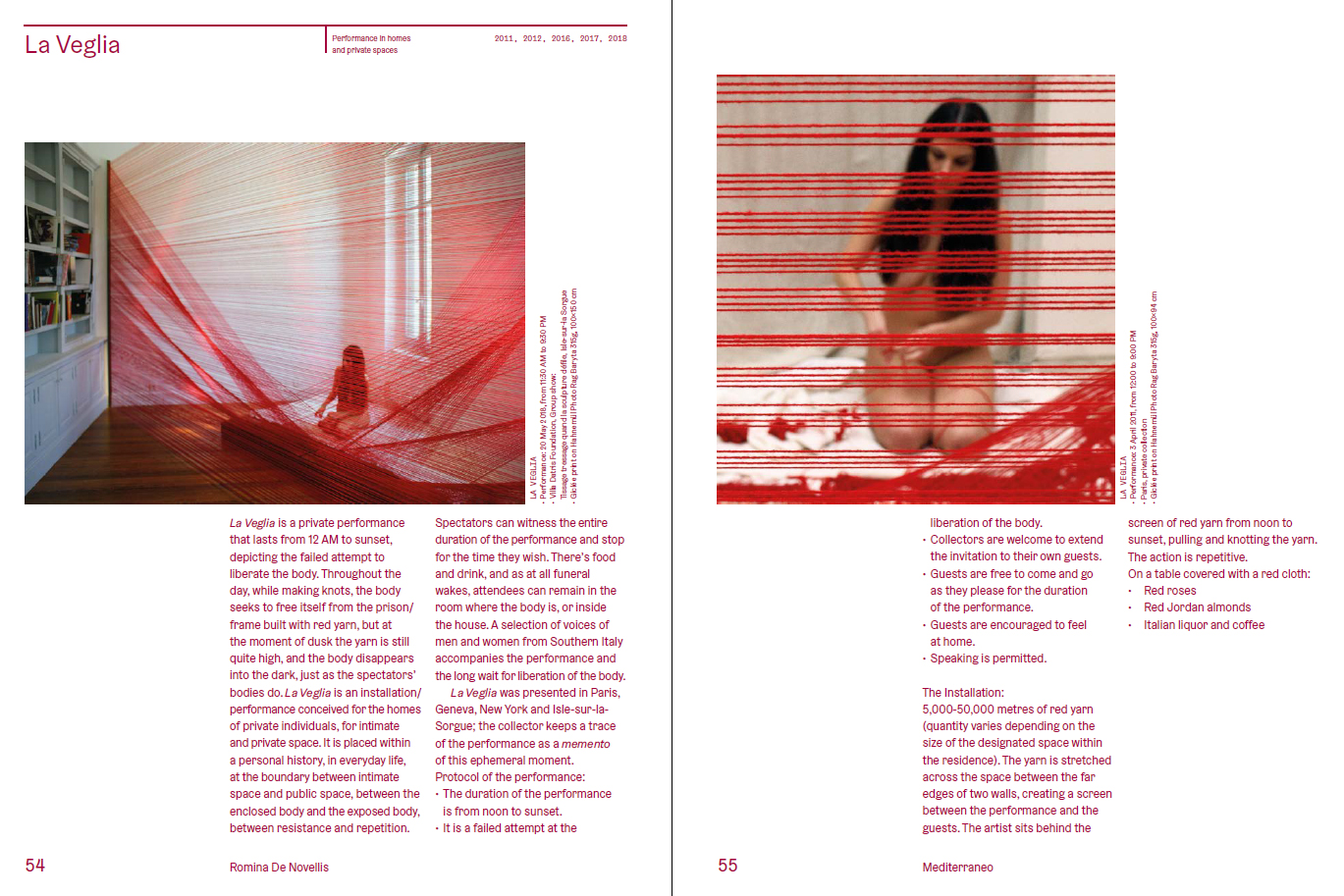 Première publication dédiée au travail de Romina De Novellis, Mediterraneo rassemble une sélection de ses œuvres réalisées au cours des dix dernières années ainsi qu'un entretien avec Elisabetta Barisoni (Ca' Pesaro - Galleria Internazionale d'Arte Moderna, Venise). Les performances sont décrites par l'artiste elle-même et nous invitent poétiquement à une réflexion profonde sur la condition humaine, sur ses contraintes et ses limites, mais aussi sur la crise politique et sociale qui touche actuellement le bassin méditerranéen.