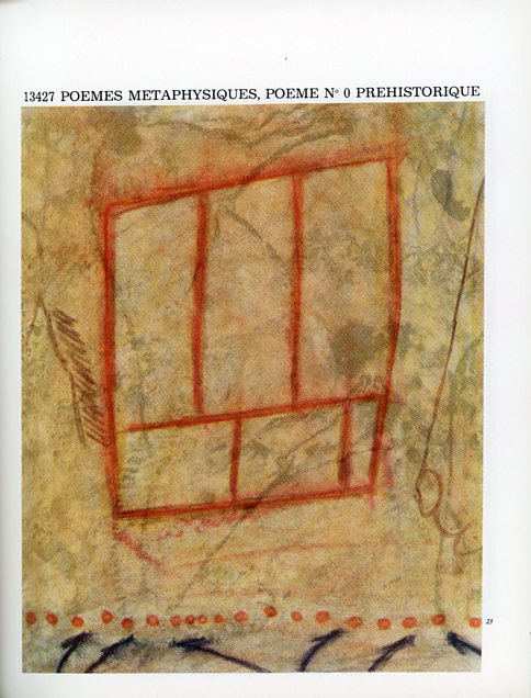 Ici, le poème est réduit à sa plus simple expression : deux énoncés bruts (un mot, une image) séparés d'un double trait. Le sens – multiple – de chaque poème est dans ce qui ressort de la confrontation des deux énoncés.