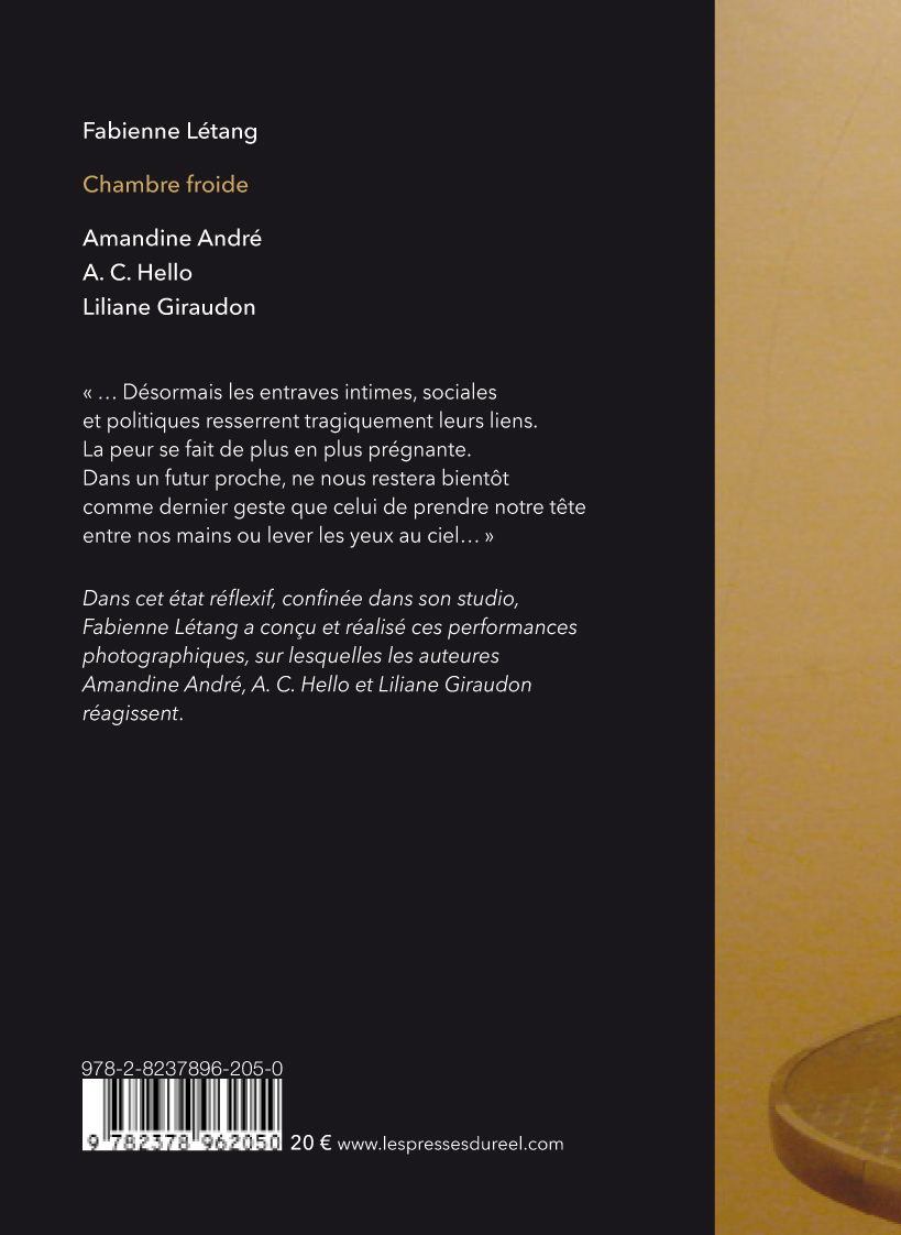 Dans cet état réflexif, confinée dans son studio, Fabienne Létang a conçu et réalisé ces performances photographiques, sur lesquelles les auteures Amandine André, A. C. Hello et Liliane Giraudon réagissent.