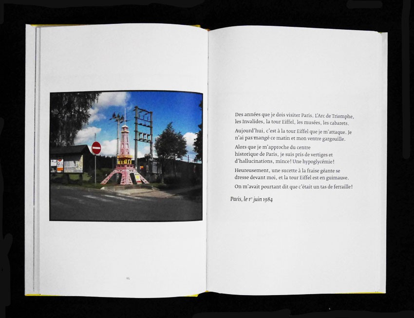 Richard Louvet, Marine Bachelot Nguyen et des patients de l'hôpital Guillaume Régnier : 86 textes pour 86 images, autant de voyages et de rencontres réels et imaginaire sous forme de carnet de voyages improbable. Les auteur.e.s des textes se sont donné.e.s libre court sans jamais ne rien savoir des images du photographe Richard Louvet. Une divagation joyeuse et libre dans le temps et l'espace où il fait bon se perdre.