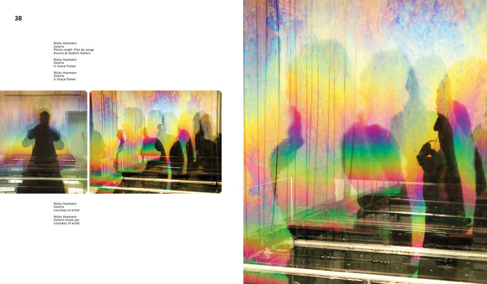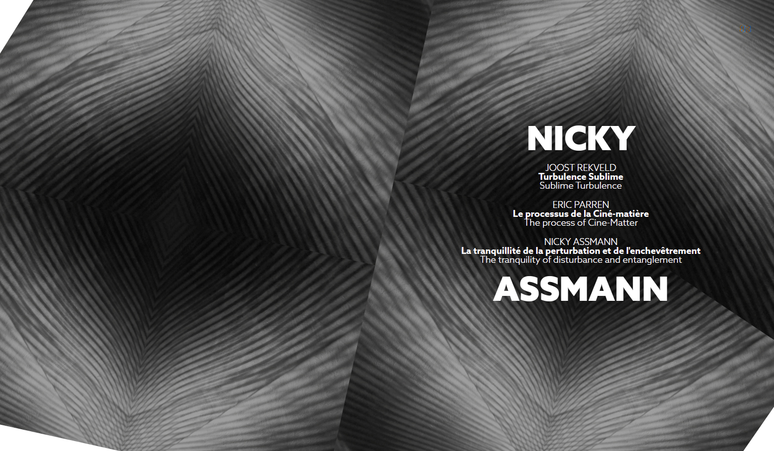 expanded cinema », Nicky Assmann expérimente tous les composants du dispositif cinématographique. Elle recrée ses propres écrans à base de divers matériaux tels que des films de savon irisés, des feuilles de cuivre traitées et teintées à la chaleur, des grilles métalliques ou encore des plaques transparentes cinétiques aux motifs moirés. Ses œuvres prennent la forme d'installations luminocinétiques, de