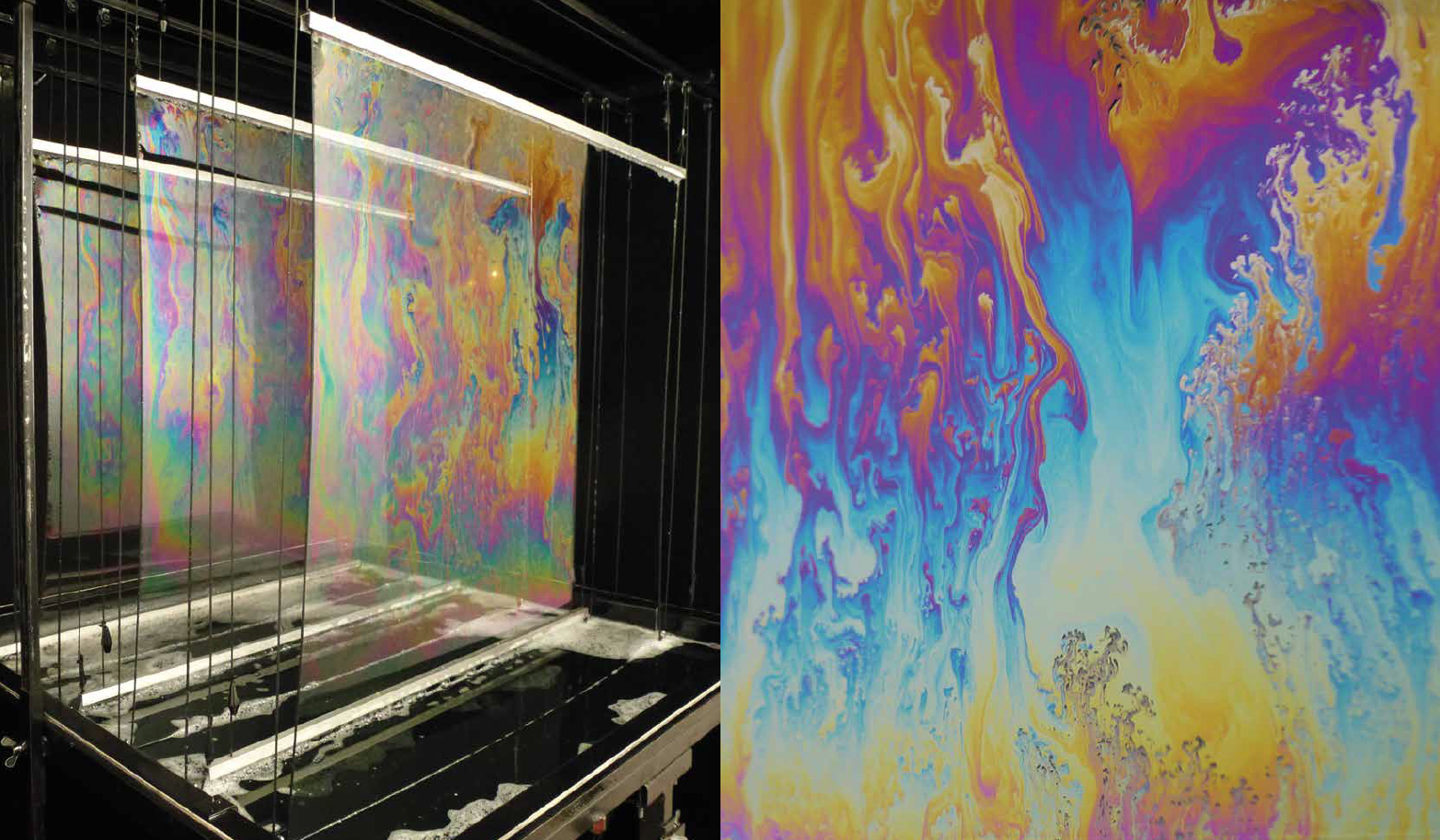 scientifiques et cinématographiques dans des expériences mêlant processus physiques et chimiques. En reproduisant des phénomènes naturels et optiques, elle crée des compositions de musique visuelle qui offrent une expérience immersive et sensorielle. sous la forme d'installations visuelles,