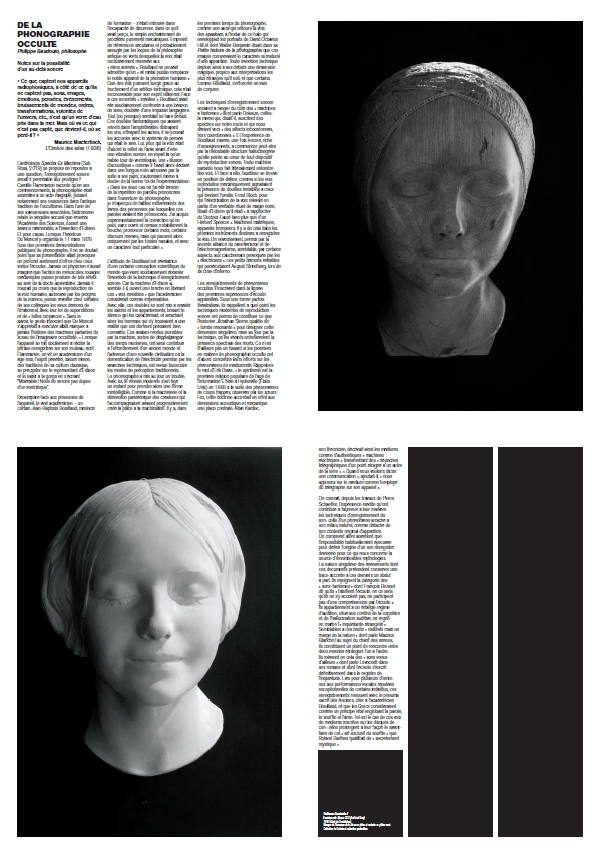 Une édition hybride (disque vinyle, livret sous forme d'un journal et insert) qui prolonge les recherches de l'artiste sur les liens entre son, architecture, hantise et histoire du spiritisme.