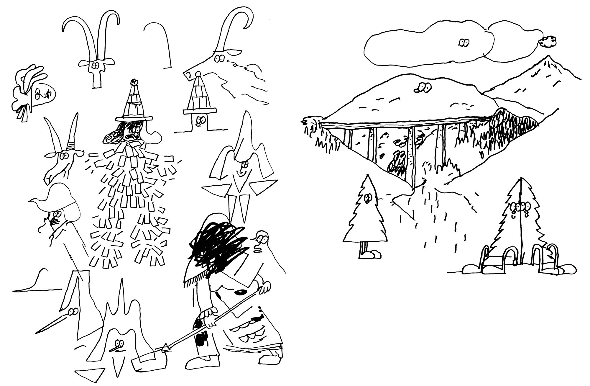 Une série de dessins revisitant l'histoire, les paysages et l'imaginaire du Tyrol en Autriche (leporello).