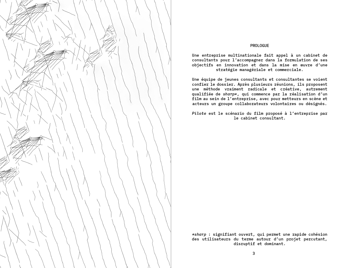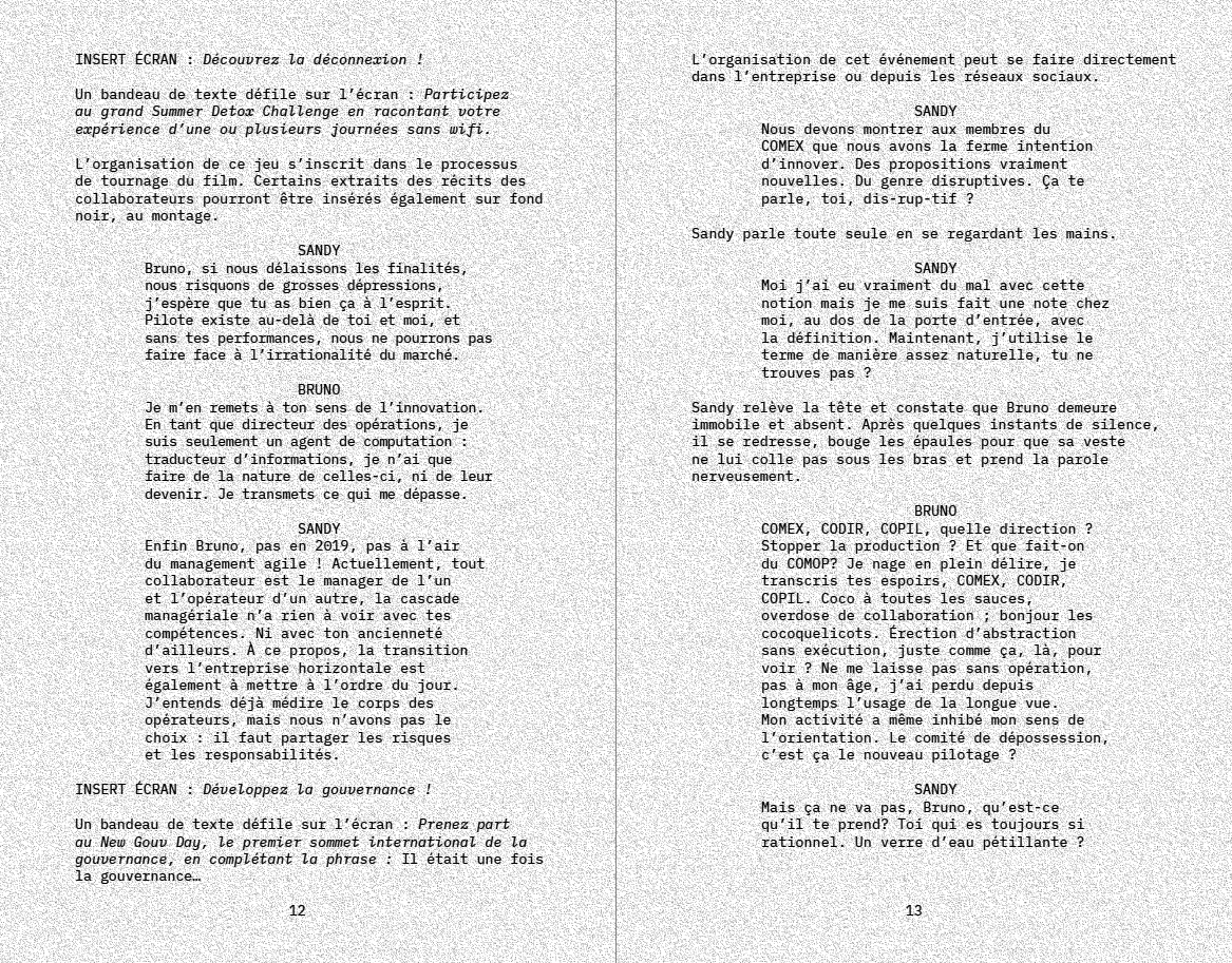 Sous forme d'un scénario, Pilote propose une projection mentale dans la construction d'un film d'entreprise sur la mythologie du management.