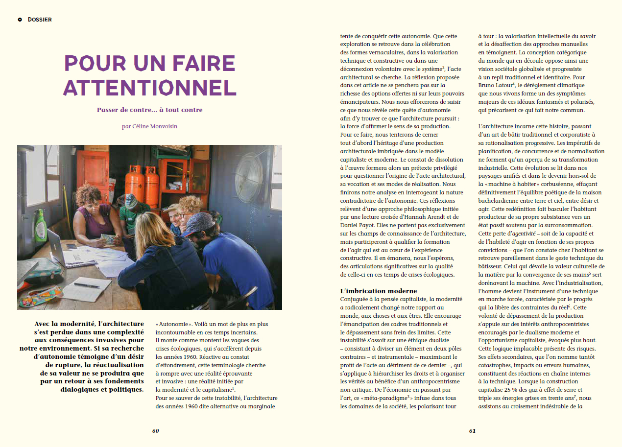« Le concept d'autonomie de l'architecture n'a pas très bonne presse, trop souvent associé aux grands courants architecturaux du XXe siècle. C'est pour cela que nous avons voulu proposer cette thématique par le biais d'un appel à articles très ouvert, permettant, à partir de la conjonction d'avis différents, de tenter une réévaluation du sens de l'architecture.