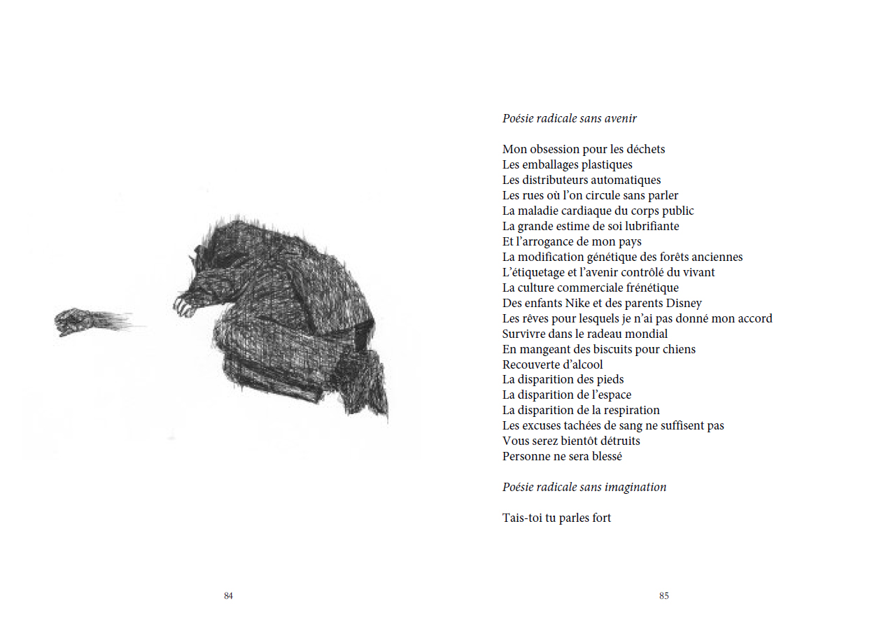 poésie sonore. Elle crée des situations. Elle dessine, peint et écrit. Elle a à son actif de nombreuses publications en revues et fanzines (papier ou internet, dont