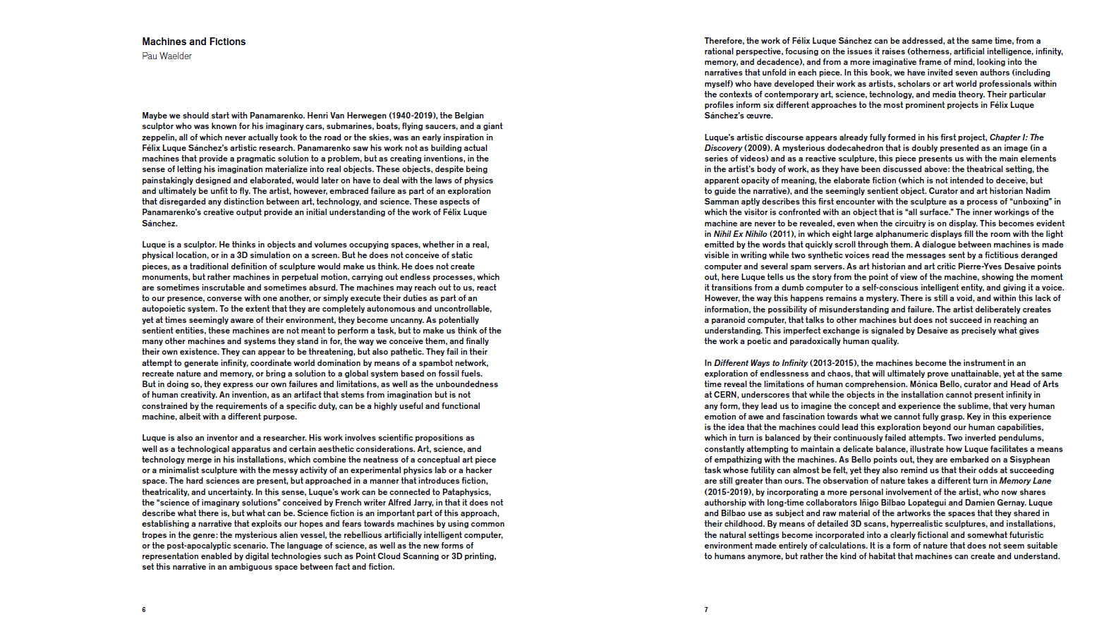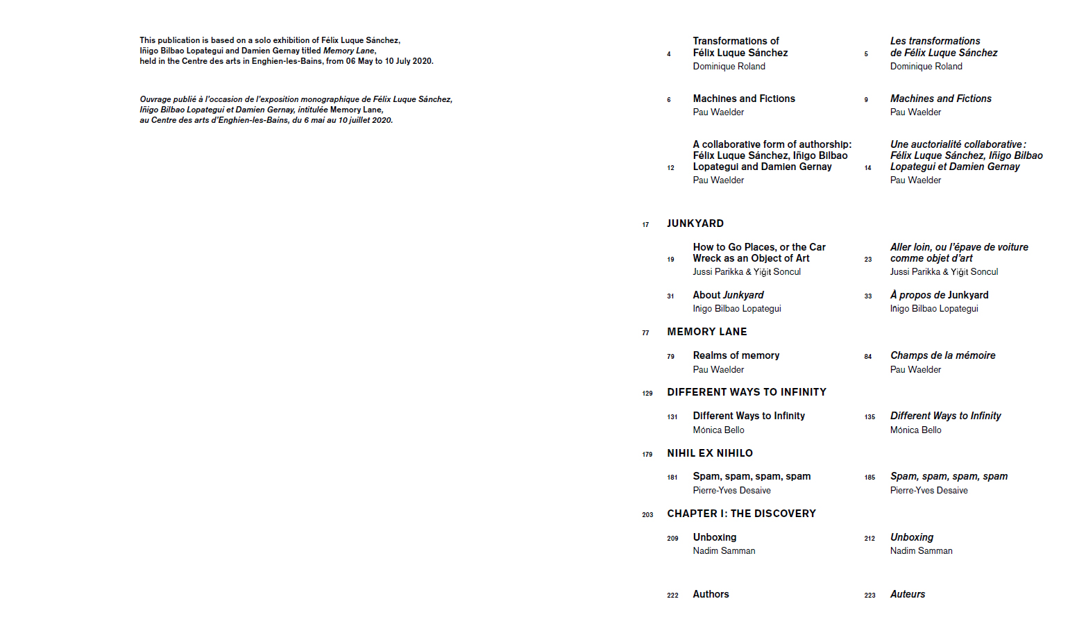 Un panorama du travail de l'artiste d'origine espagnole Félix Luque Sánchez sur les douze dernières années, en collaboration avec les artistes Damien Gernay et Íñigo Bilbao, avec un ensemble d'essais d'universitaires, de commissaires et de critiques d'art.