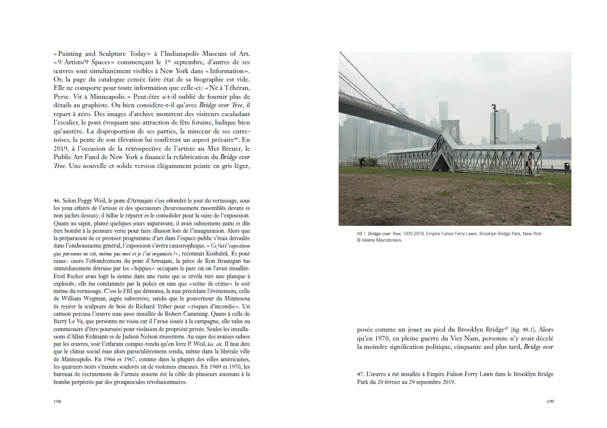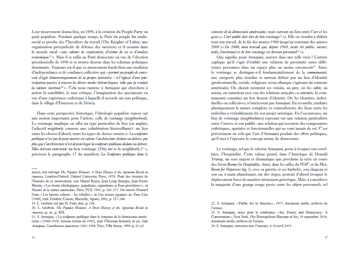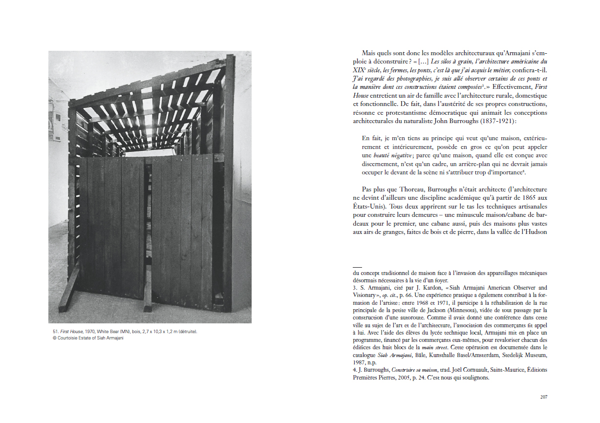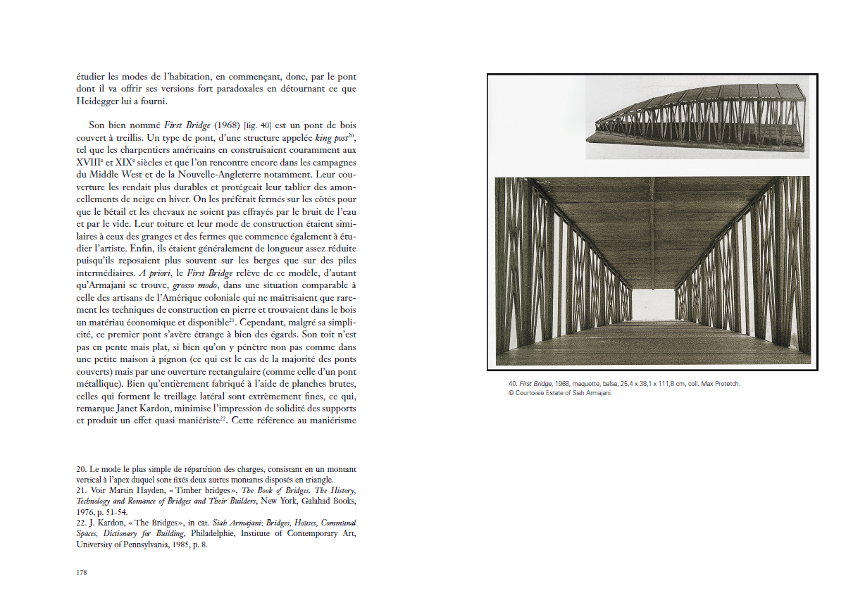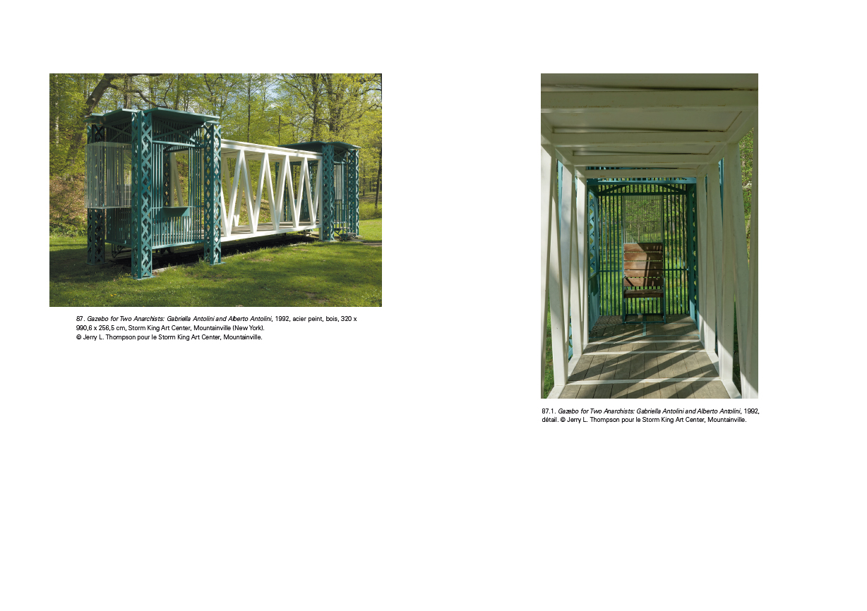 utopiques. Pourtant, c'est bien dans un registre apparemment opposé, celui des constructions humbles et familières, qu'Armajani va ancrer le pragmatisme de son art. Dès lors, ses architectures-sculptures allégoriseront autant les idéaux que les contradictions de la démocratie américaine avant d'être dédiées à des figures de l'