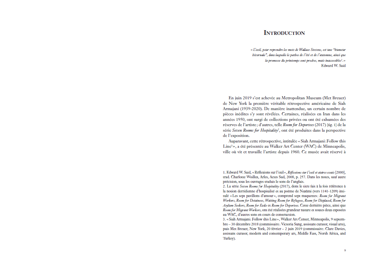 C'est à Téhéran qu'Armajani commence à réaliser des collages associant des motifs et des fragments de poèmes emblématiques de sa