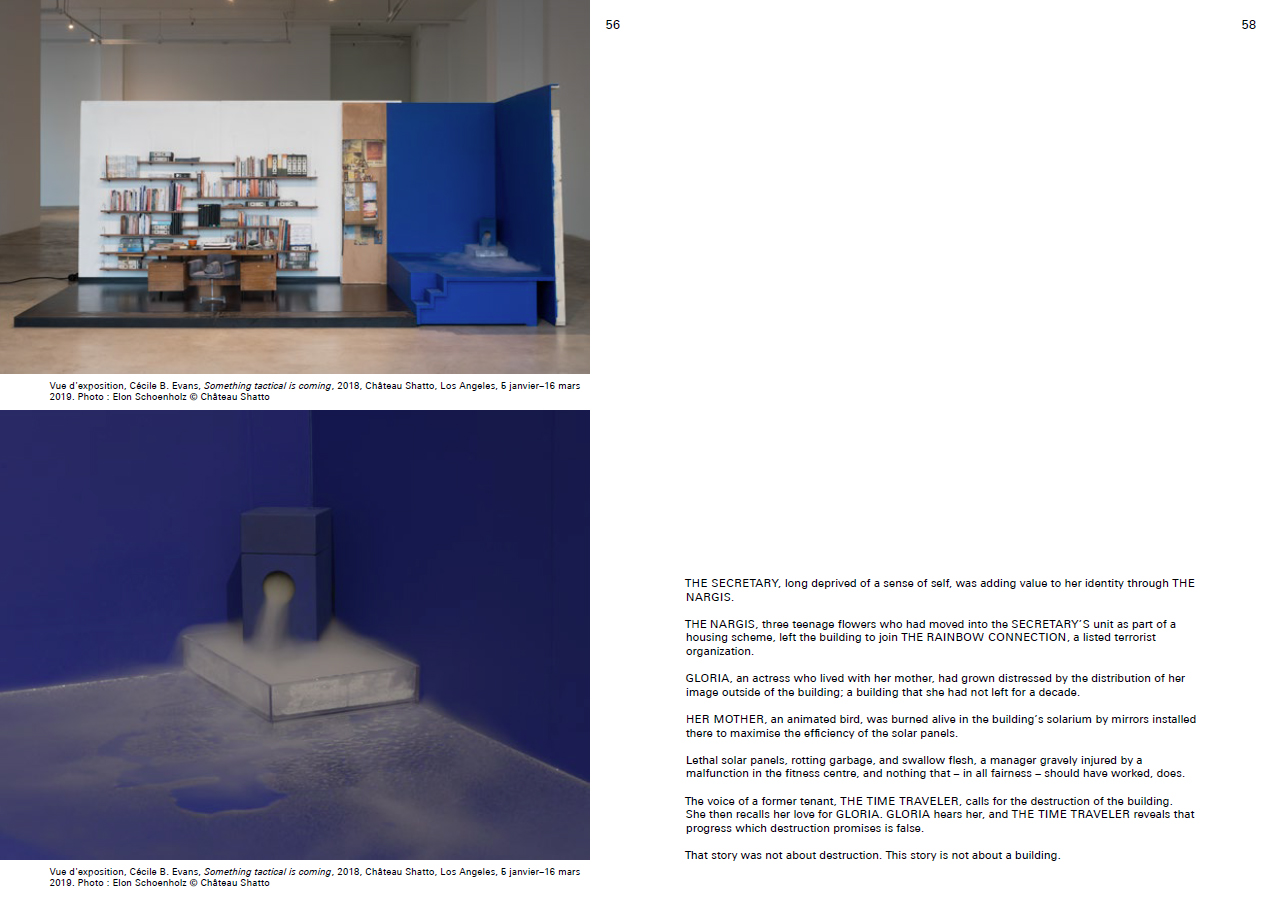 Le catalogue de l'installation architecturale et vidéo de l'artiste belgo-américaine, à la croisée de différentes disciplines, conçu par Cécile B. Evans elle-même.