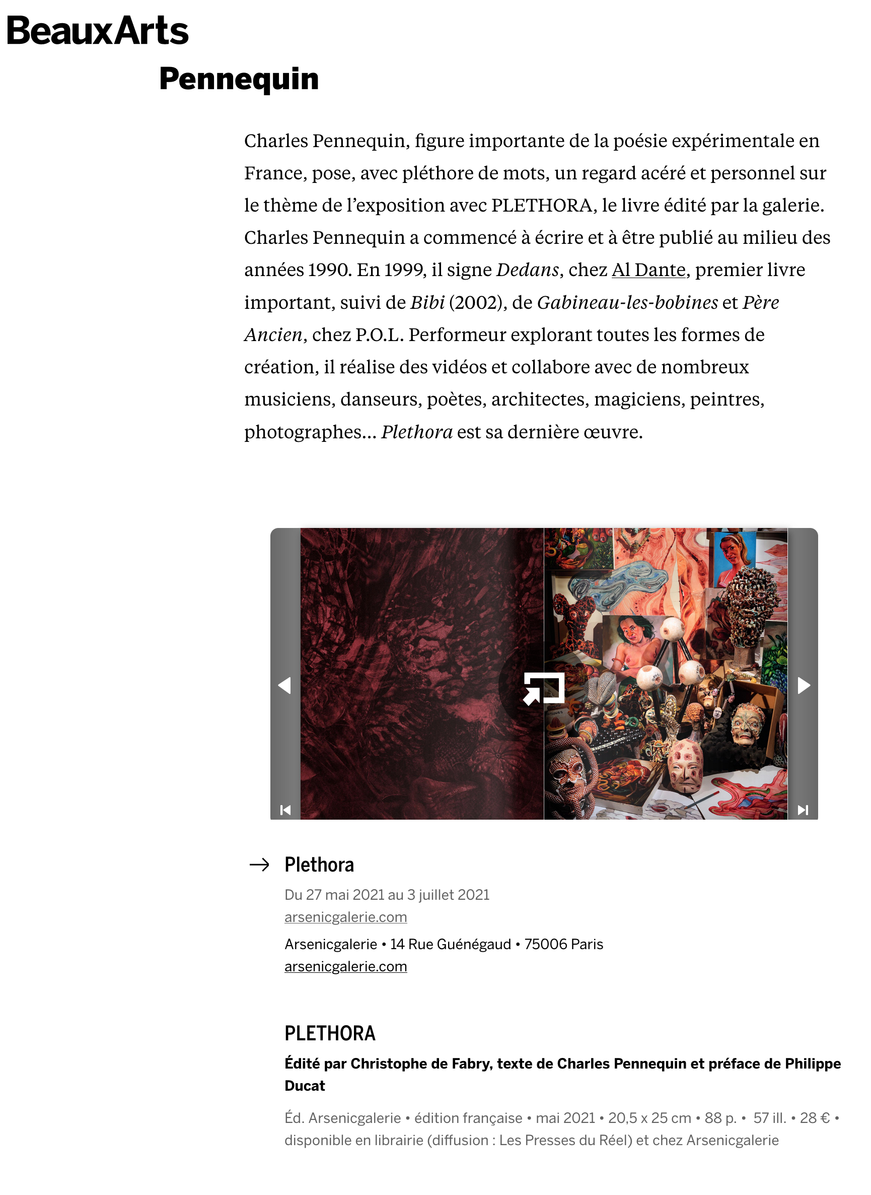 Charles Pennequin (né en 1965 à Cambrai, vit et travaille à Lille), artiste et poète, l'un des plus grands représentants de la poésie-performance en France, remarquable lecteur de ses textes à l'occasion de nombreuses interventions performatives, explore avec son travail protéiforme les voies de la création moderne. Texte remarquable, par son rythme, sa rapidité, sa ponctuation agile et le travail de langue, qui en apnée, hypnotique, va s'imposer auprès de nombreux auditeurs lors de ses lectures. C'est avec pléthore de mots, pléthore de phrases, pléthore de sens, que l'ancien gendarme autodidacte capte l'attention avec sa poésie cadancée. Charles Pennequin a commencé à écrire et publier dans le milieu des années 1990. En 1999, il publie Dedans, chez Al Dante, premier livre important. Puis en 2002, Bibi, suivi de Gabineau-les-bobines et Père Ancien, chez P.O.L. Il pratique la performance et fait de nombreuses vidéos. Il a depuis publié beaucoup de livres, de disques, de DVD. Il travaille avec de nombreux musiciens, des performers, des danseurs, des poètes, des architectes, des magiciens, des chanteurs, des plaisantins, des peintres, des dessinateurs, des clowns et des photographes.