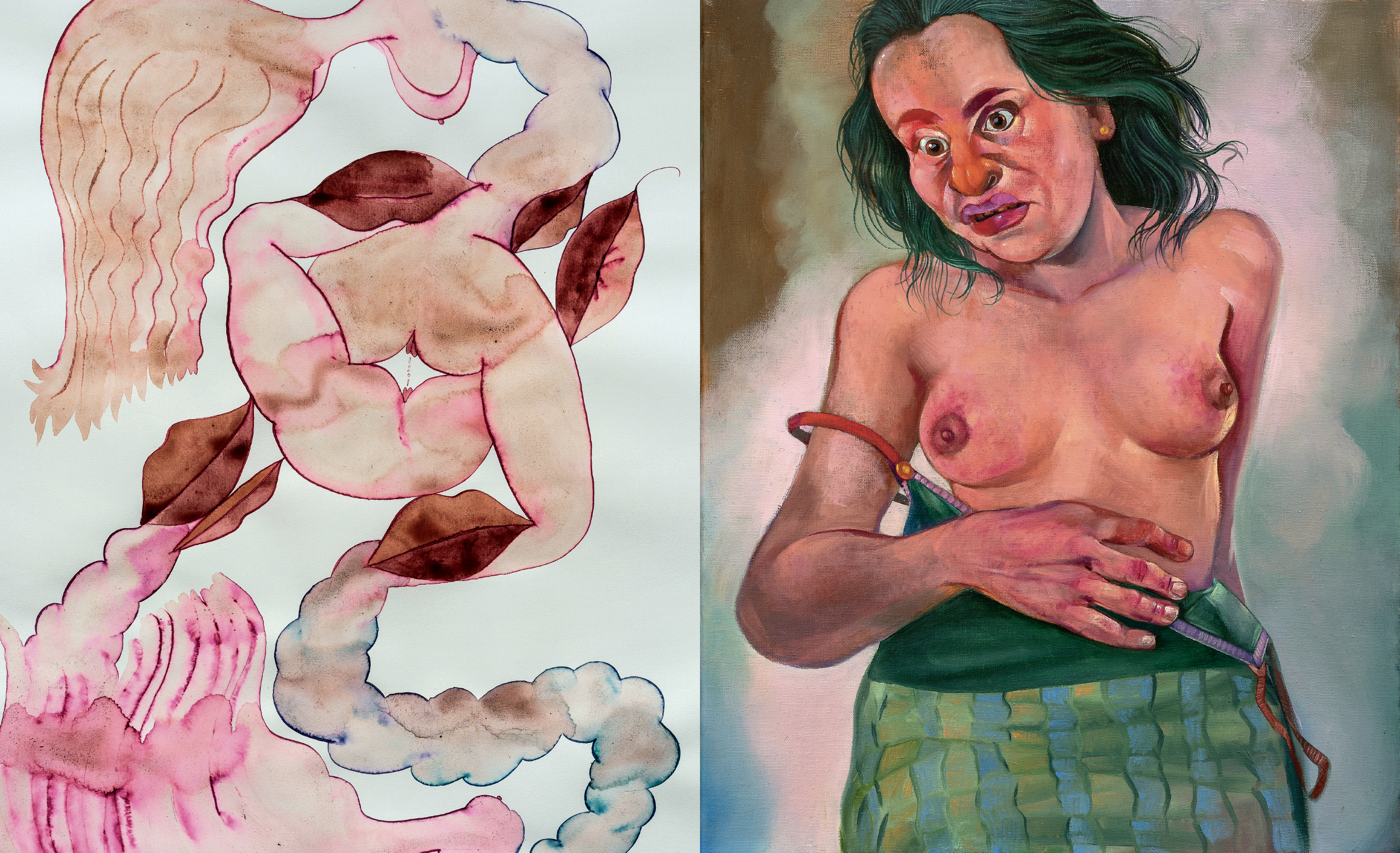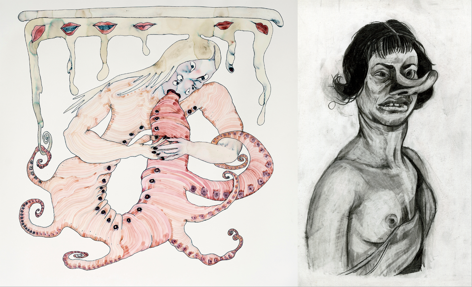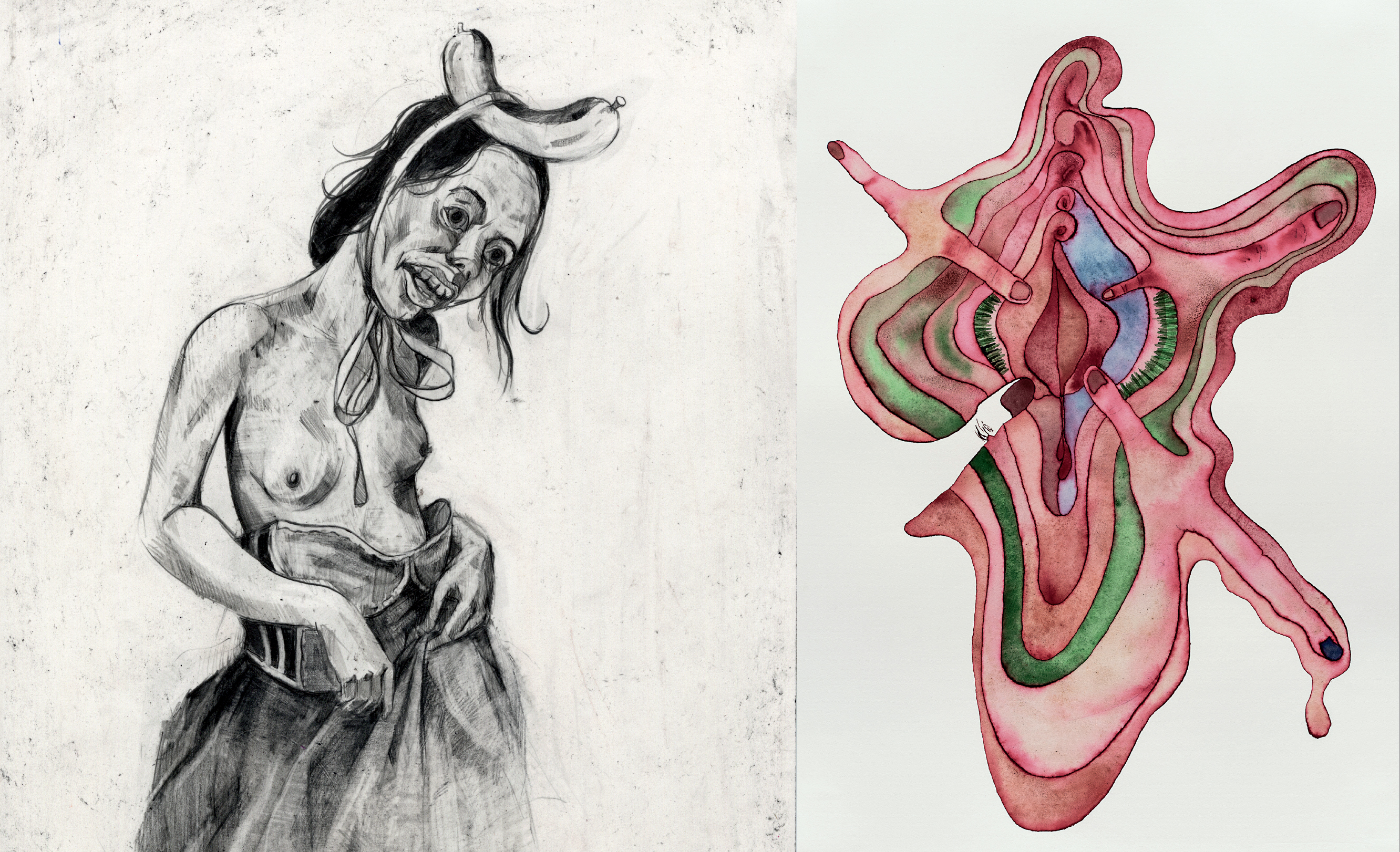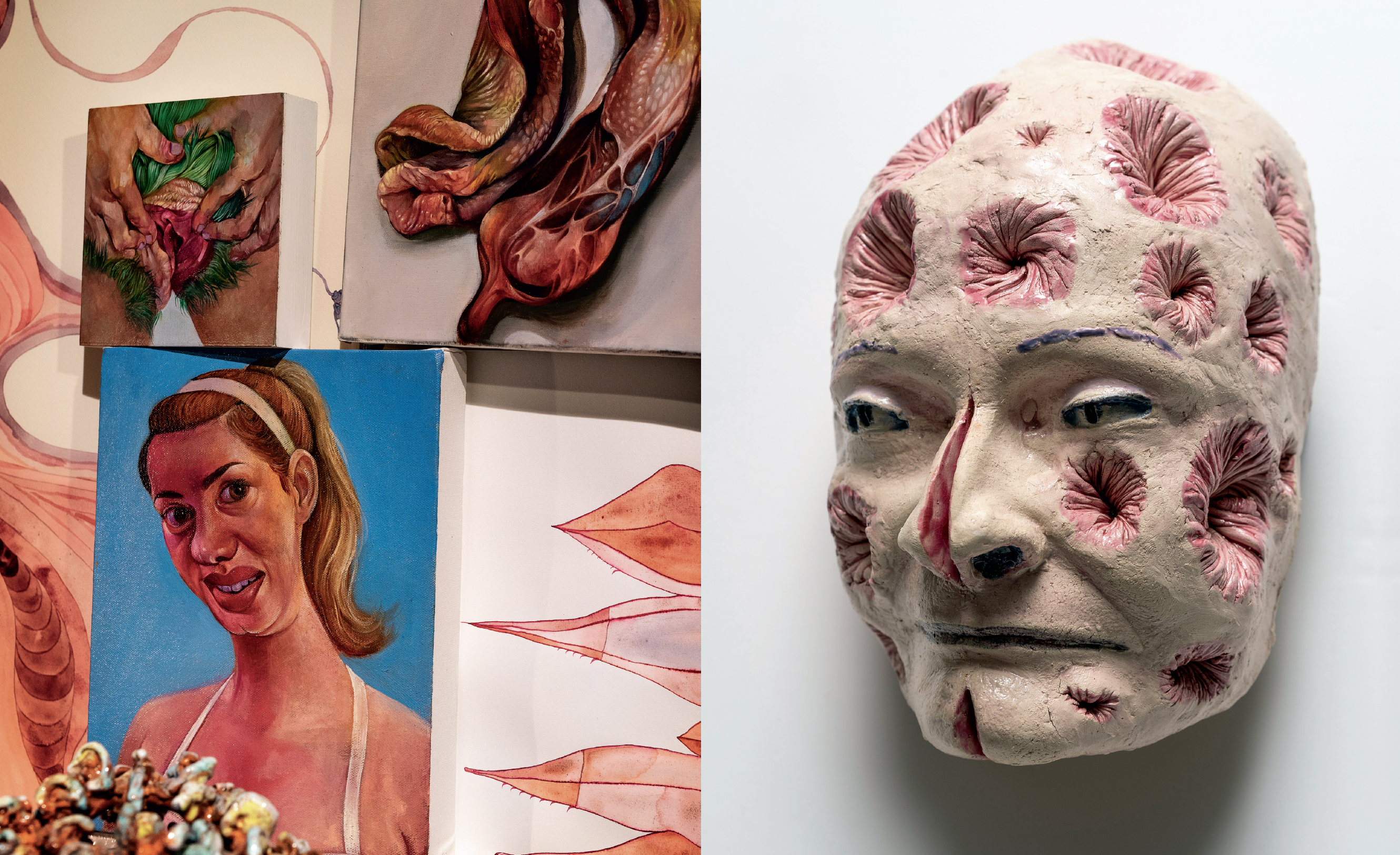 « Je peins des personnages, en me concentrant sur les petits détails qui m'obsèdent... un peu de graisse qui dépasse d'une ceinture, des chaussures mal ajustées, des occlusions, des nez, des dents et de la chair. Que ce soit par le biais du portrait ou de tableaux chargés, je crée un monde et un vocabulaire de personnages qui vivent et embrassent leurs soi-disant défauts. Au fil des ans, ce travail s'est transformé en accumulations qui sont des substituts corpulents et viscéraux des personnages. La viande, les déchets, les pâtés et les fruits et légumes ressemblant à des organes génitaux sont érigés en structures héroïques mais pathétiques. Ces accumulations agissent également comme une sorte de preuve médico-légale et de catalogage de relations sexuelles maladroites, de gloutonnerie grossière, de rituels de masturbation ridicules, d'humiliation et d'échec sans fin. L'œuvre est absurde, grotesque et un peu brutale, mais j'essaie d'attirer le spectateur avec des surfaces exubérantes et lumineuses, créant un équilibre instable et hilarant entre répulsion et d'attraction. »