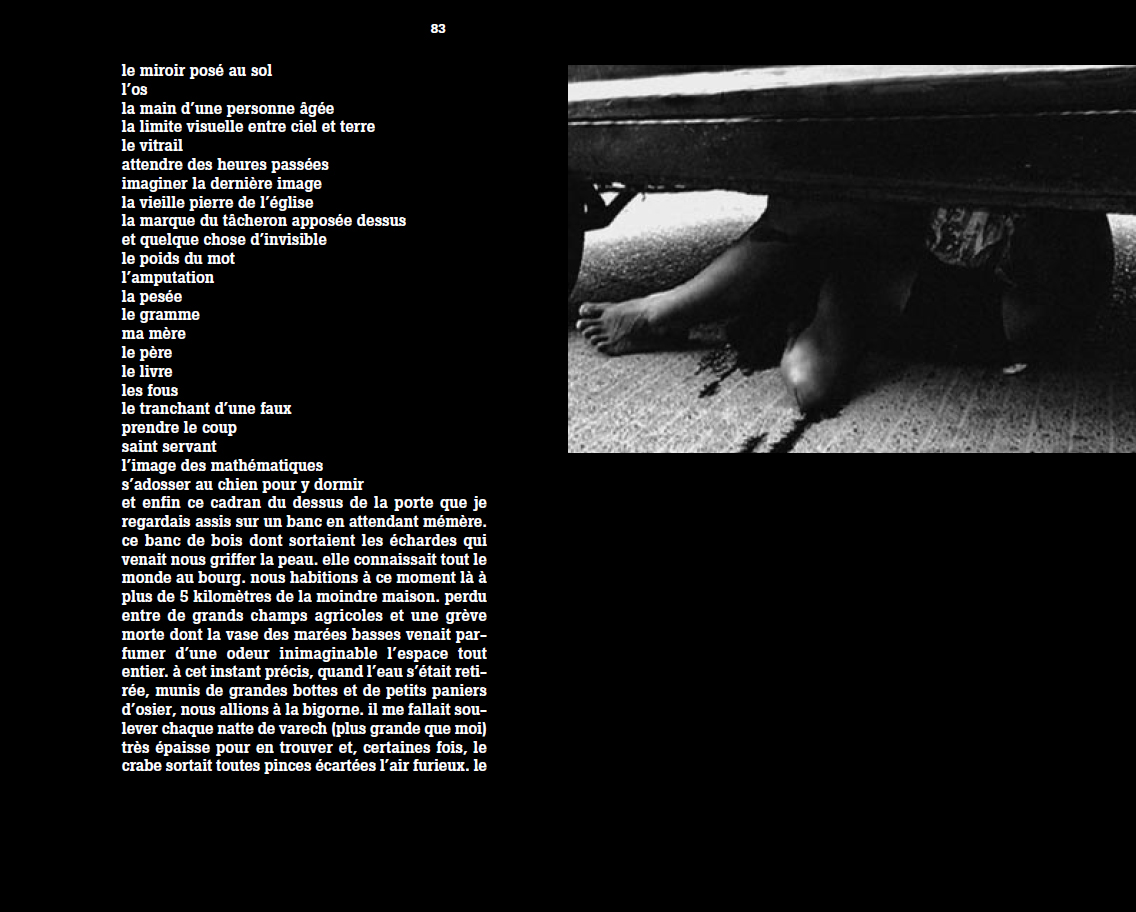Sa maquette, contrainte par le format défini par l'édition pour la collection Dans le vif, n'a pu préserver le rythme initial des textes.