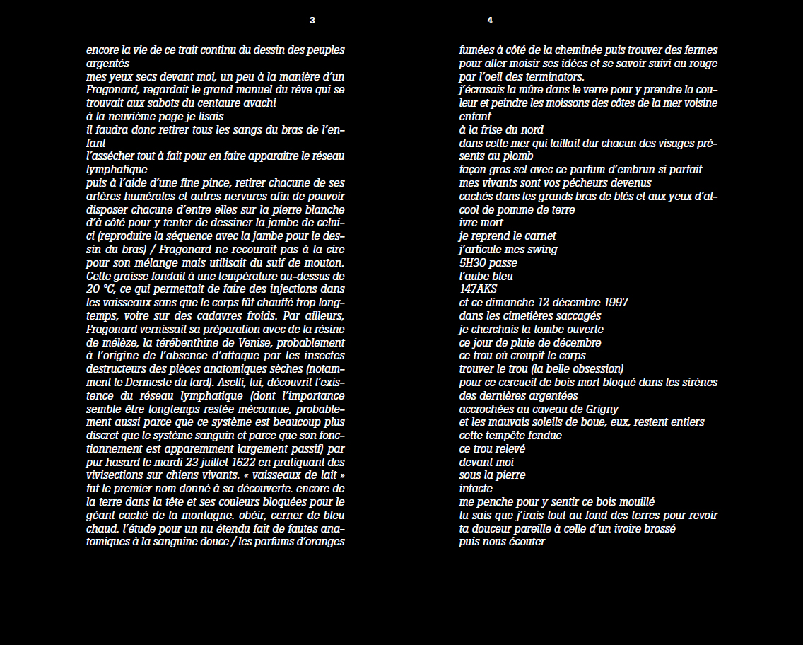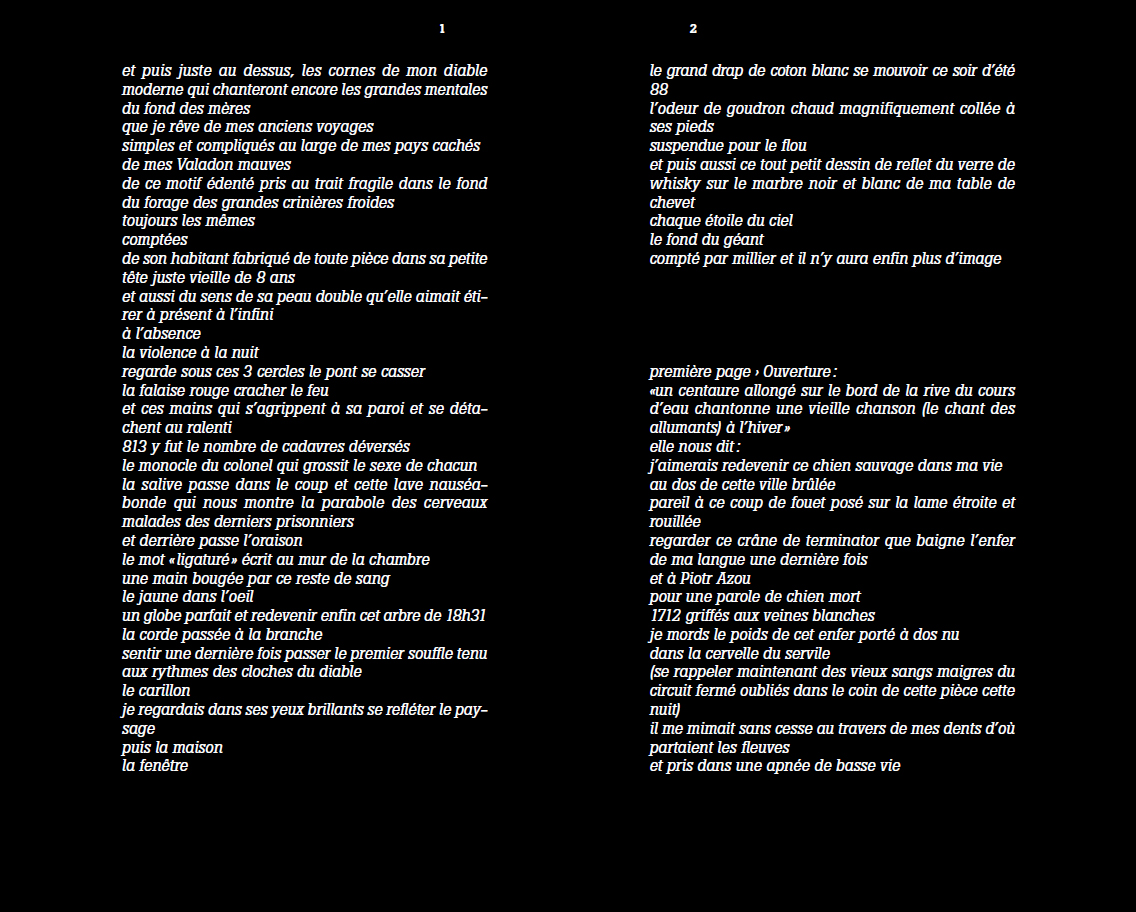Ils ont été chaînés les uns aux autres de façon aléatoire, empirique et sans ponctuation particulière ni chapitrage.