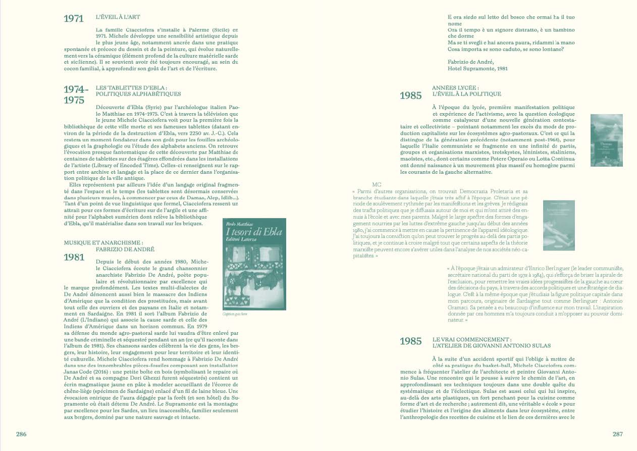 Une rétrospective des dix dernières années du travail graphique et sculptural (peintures, dessins, sculptures en verre soufflé, pièces textiles, céramiques…) de l'artiste sarde installé en France, dont l'œuvre très incarnée est centrée sur la question de la mémoire, de l'archéologie et du sens de l'Histoire. L'ouvrage, qui constitue une introduction complète à sa pratique, met en lumière sa contribution majeure à la reconstitution d'un imaginaire transméditerranéen.