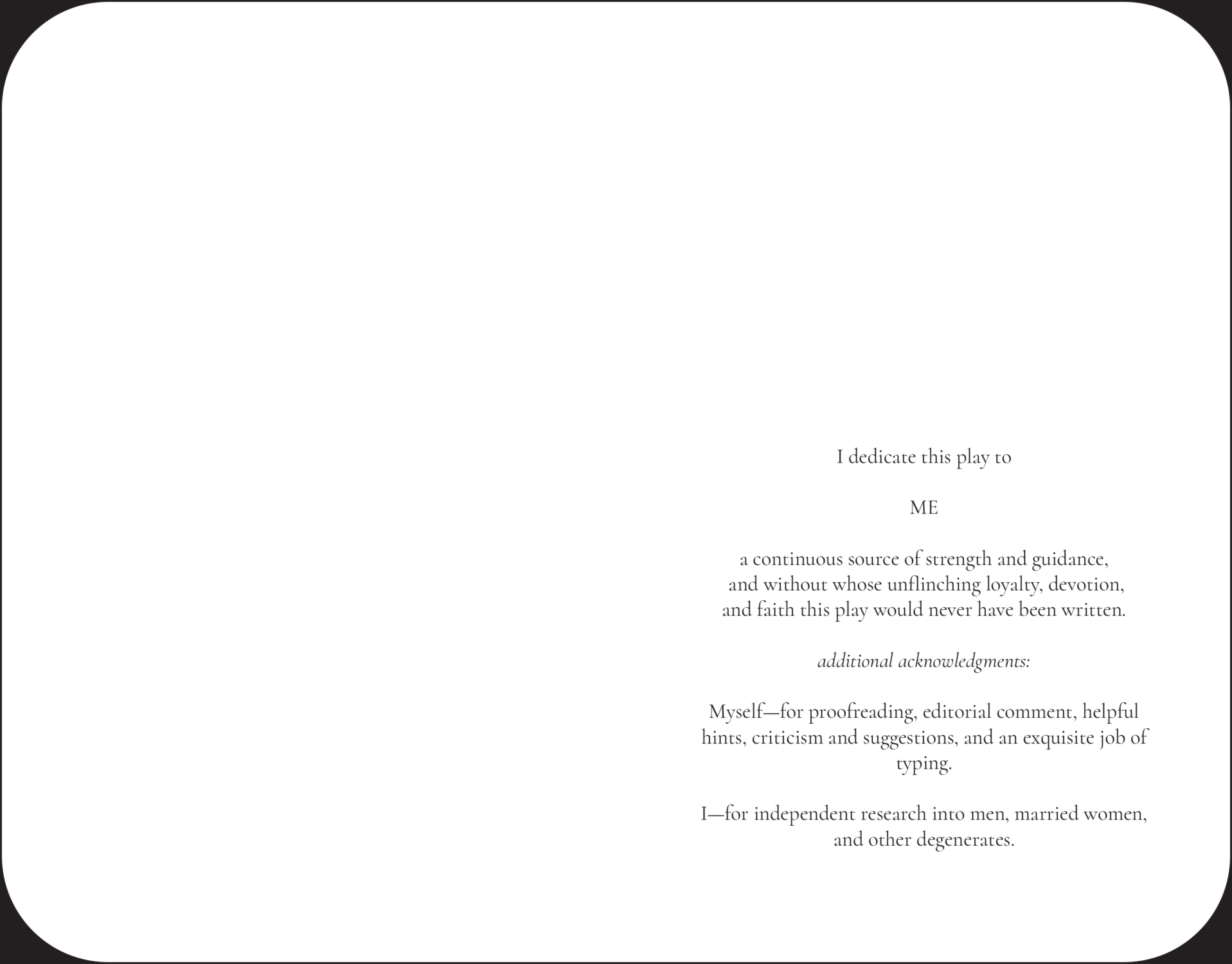 Up Your Ass (1965), pièce légendaire rarement publiée de Valerie Solanas, explose les mœurs sociales et sexuelles et la culture patriarcale hypocrite qui les produit, avec l'irrévérence, l'esprit, l'incisivité et l'humour qui la caractérisent.