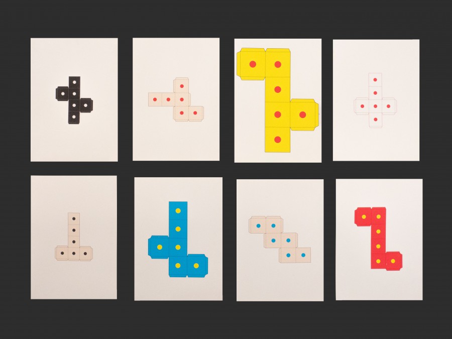 Chaque carte respecte la taille et les couleurs dudit dé. En tant qu'imprimés, ces cartes postales rejouent singulièrement le rapport entre l'unique et le multiple, dont les constellations infinies deviennent ici épistolaires. Ces dés virtuels peuvent ainsi se propager à travers le monde au gré de leurs envois.