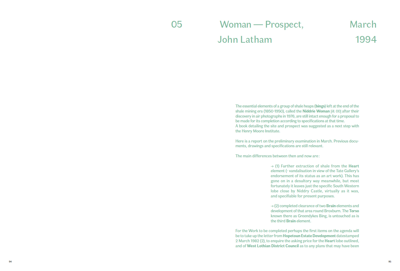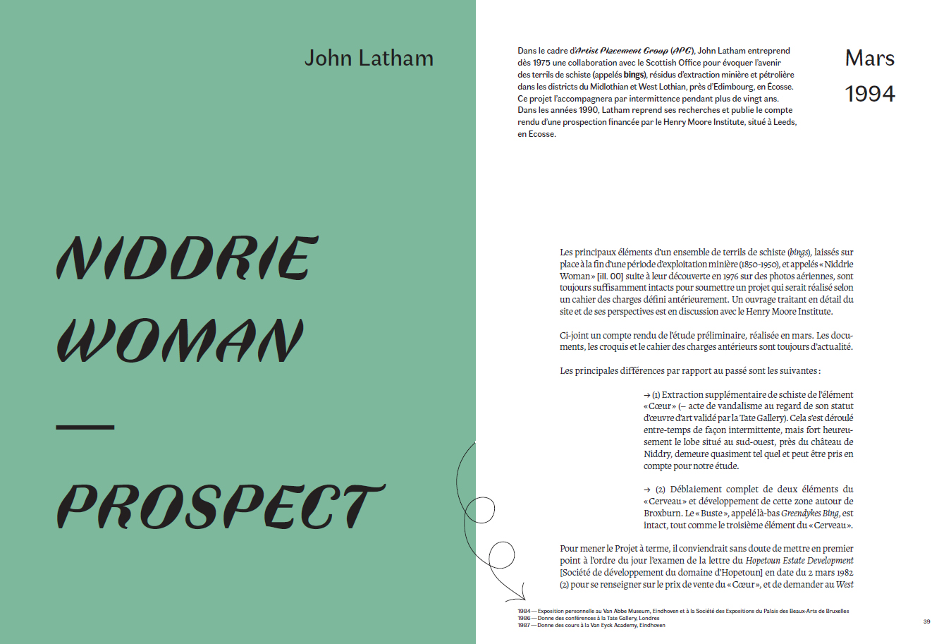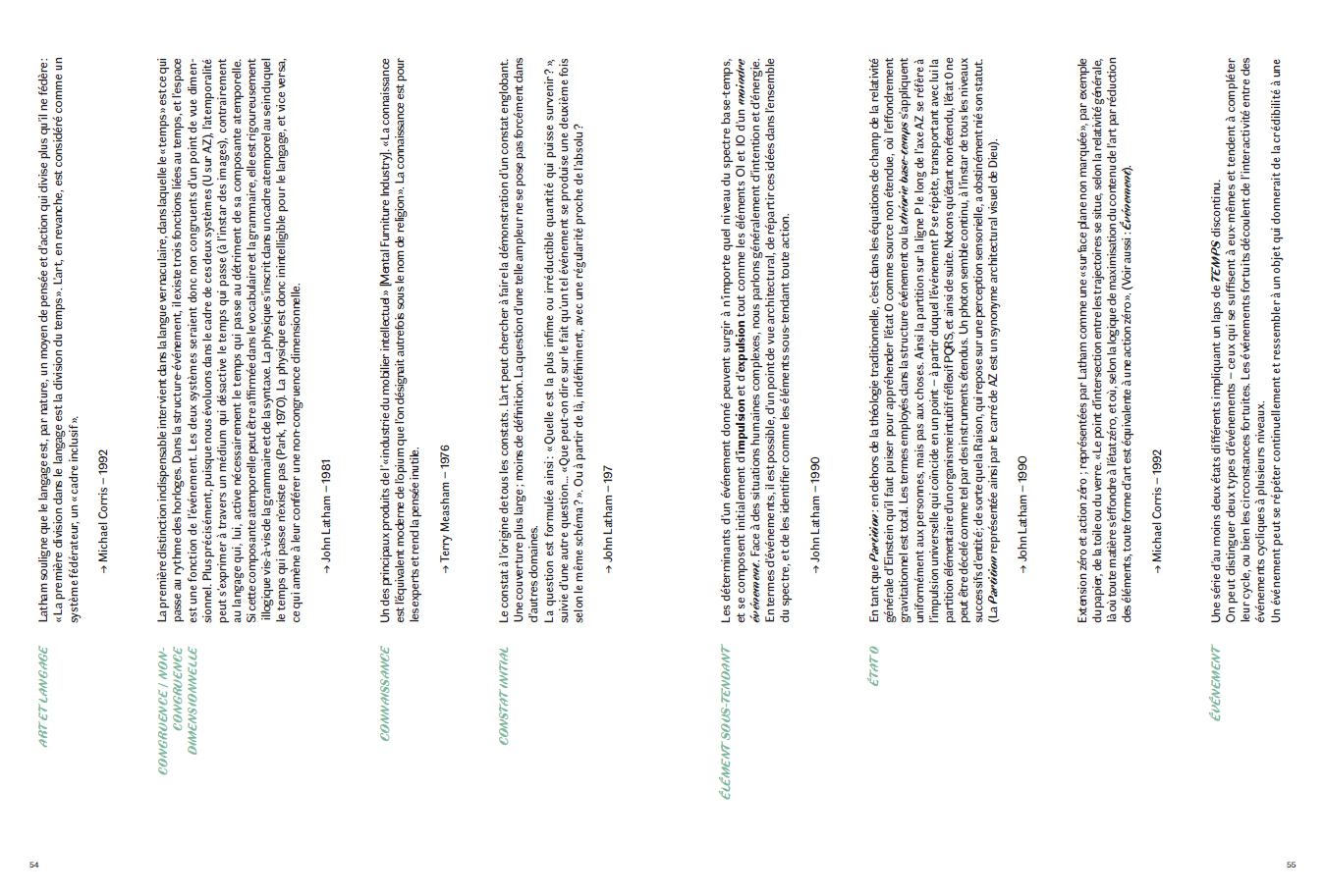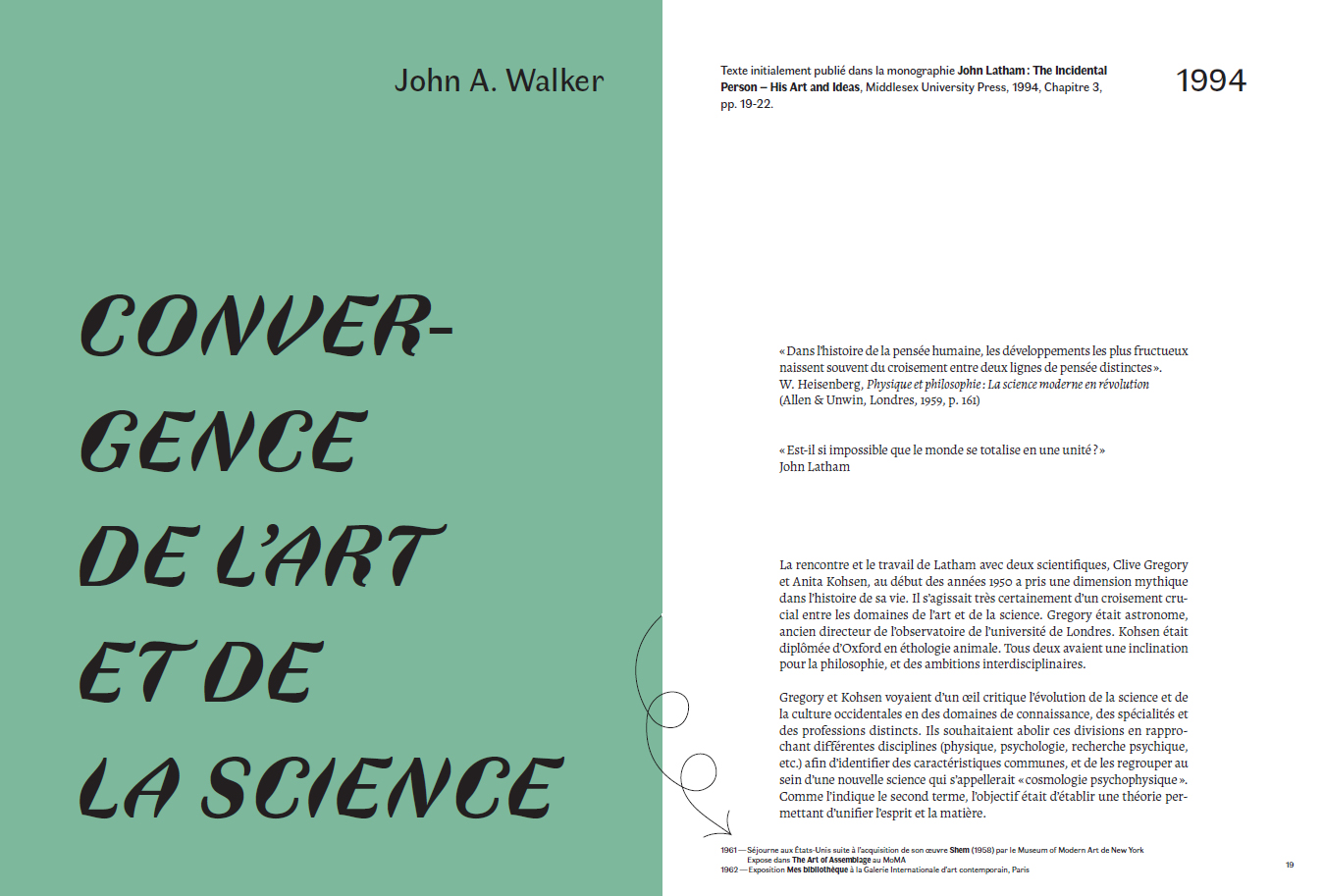 Cet ouvrage est le premier en français consacré à son travail. Il rassemble une sélection d'écrits de l'artiste, ainsi que ceux d'autres auteurs à son sujet. Ils sont accompagnés des versions originales des textes anglais et d'un glossaire visant à éclairer un champ lexical propre à Latham, composé de termes qui, selon lui, « existent depuis longtemps mais ne se sont pas manifestés dans le langage pour la simple et bonne raison que c'est le langage même qui fait défaut… ».
