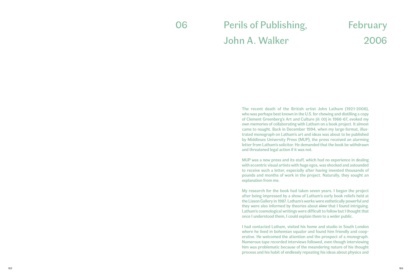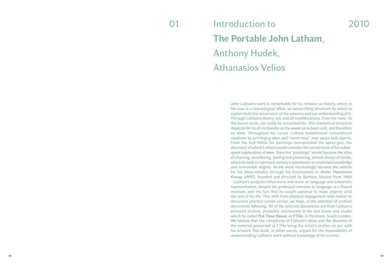 Textes de Michael Corris, Fanny Gonella, Antony Hudek & Athanasios Velios, Jakob Jakobsen, John Latham, John A. Walker.