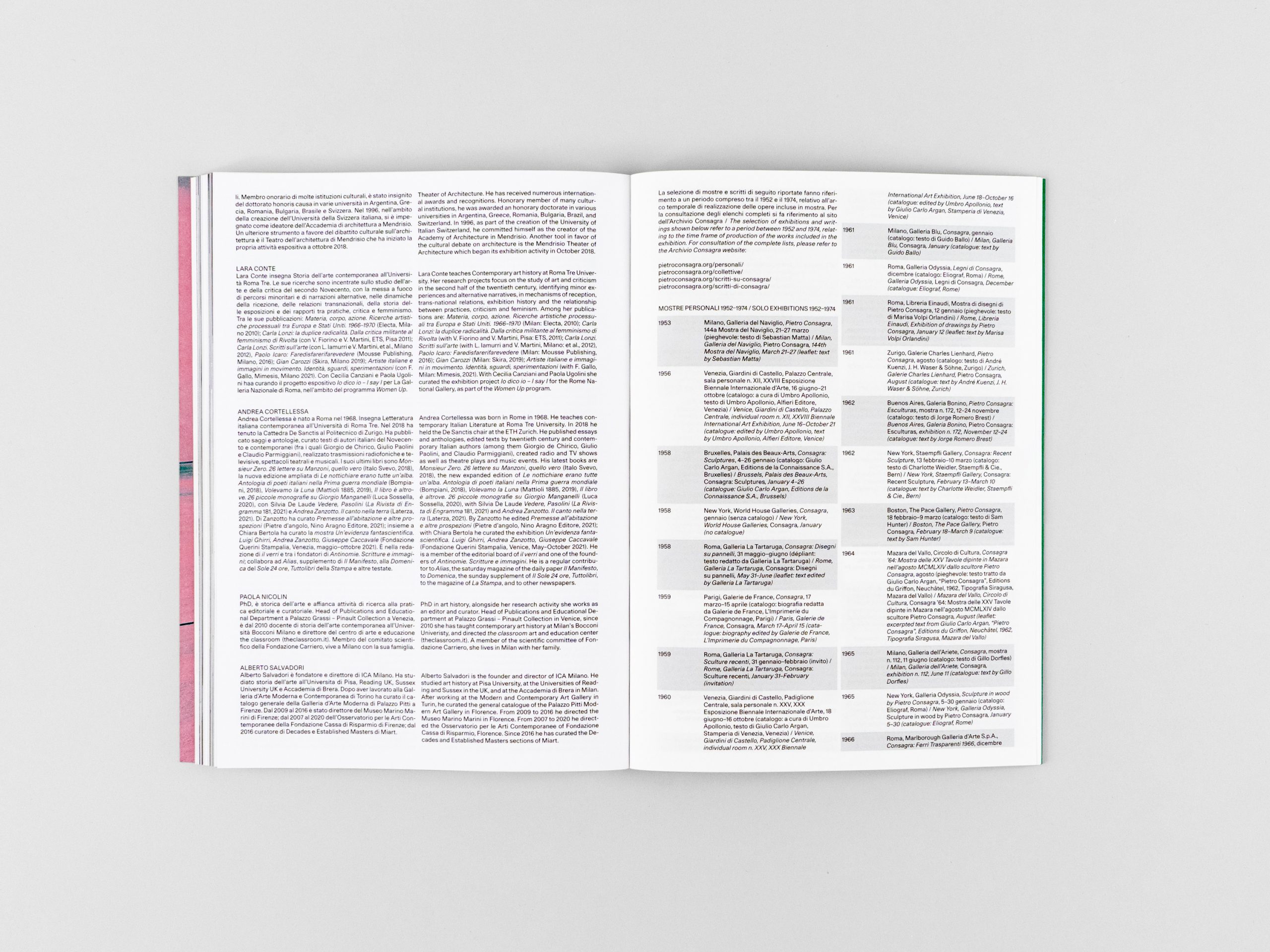 Ce volume, publié à l'occasion de l'exposition éponyme organisée par Alberto Salvadori à la Collezione Giancarlo e Danna Olgiati de Lugano, célèbre l'œuvre de l'artiste à l'occasion du centenaire de sa naissance. Développée en collaboration avec l'Archivio Consagra, elle explore les multiples facettes de l'œuvre de Consagra : de sa relation passionnée avec l'architecture, à ses échanges intellectuels avec la critique d'art et militante féministe italienne Carla Lonzi et son rôle crucial dans l'art italien d'après-guerre, en passant par la légèreté de ses peintures sur tissu, intitulées Lenzuoli.