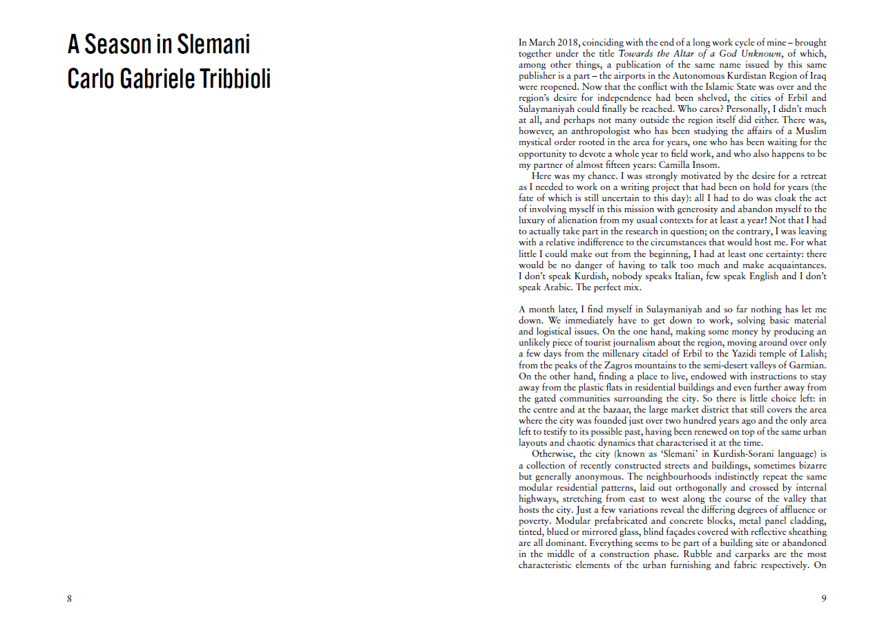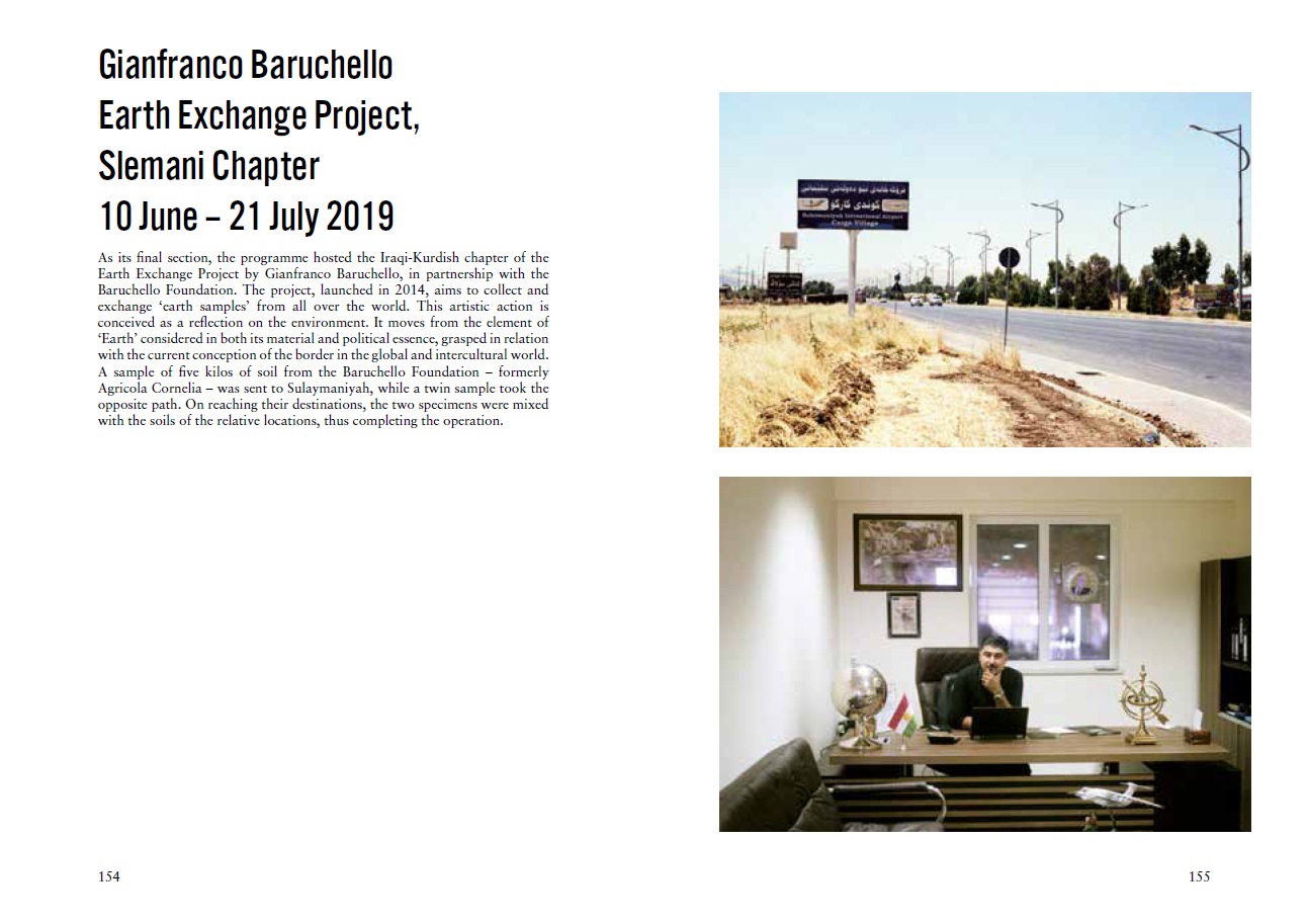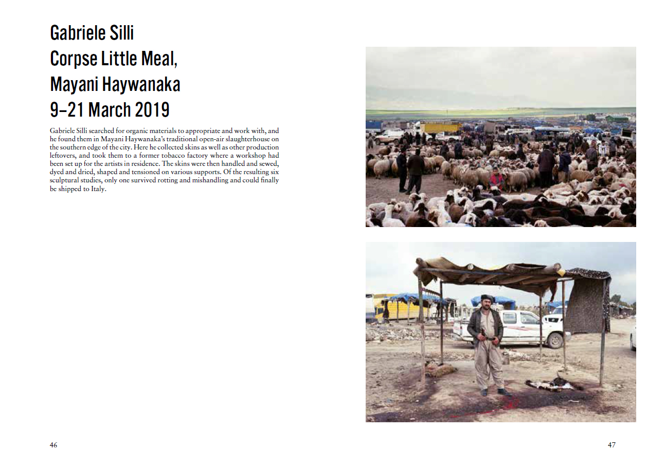 Entre mars et juin 2019, Carlo Gabriele Tribbioli a invité un certain nombre d'artistes à le rejoindre et à développer chacun un projet artistique dans la ville de Sulaymaniyah (Slemani, en kurde), dans la région du Kurdistan irakien. Ces invitations ont donné lieu à une série de résidences d'artistes et de projets de collaboration à distance, développant la question du rapport au territoire : un territoire qui a accueilli et hébergé les artistes et leurs projets tout au long de cette expérience, au quotidien, une expérience menée à terme malgré les aspects critiques qui affectent la région et la difficulté objective d'y accéder.