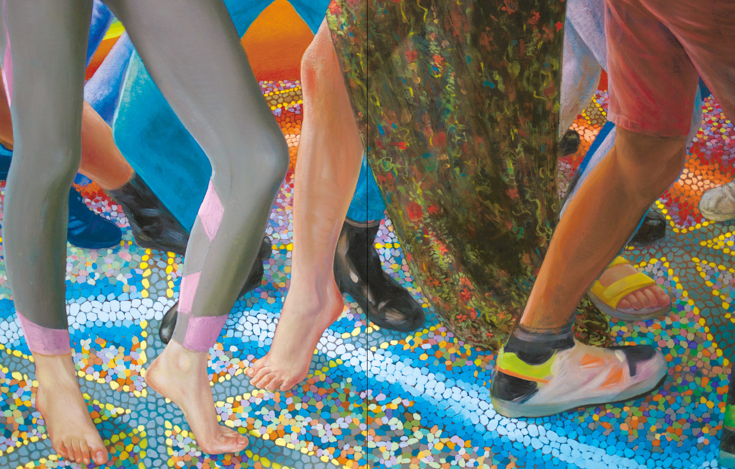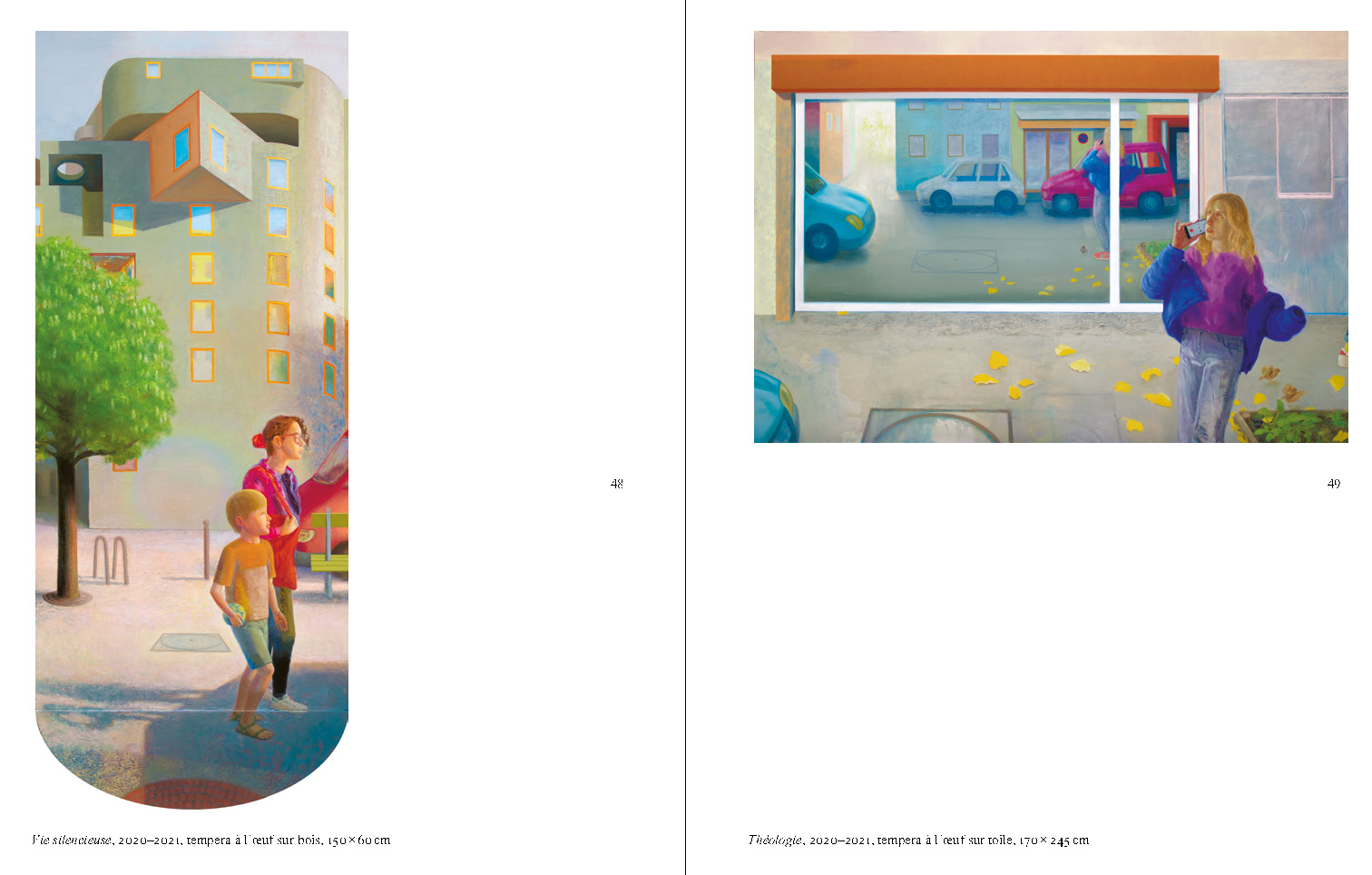 Si elles s'ouvrent sur de nouveaux espaces, souvent urbains, les peintures récentes de Marion Bataillard sont bien peuplées par des personnages qui, seuls ou en groupe, continuent d'animer sont travail en remuant la question tant picturale que métaphysique de l'incarnation : « j'aime penser au monde comme à la création et à ses habitants comme à des créatures, puissantes et impuissantes à la fois. Cela me les rend aimables ».