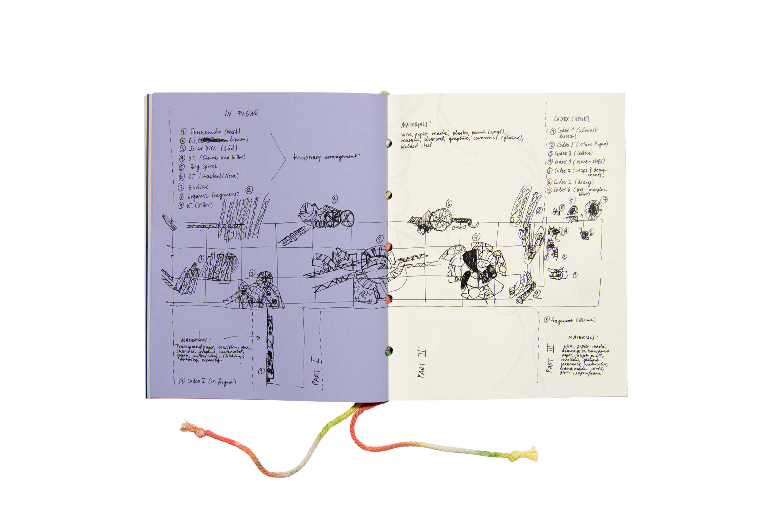 Ce livre d'artiste, réalisé à l'occasion de l'exposition éponyme au Kunstverein Hannover, est la première publication complète sur l'artiste Isabel Nuño de Buen. Le livre construit une narration parallèle à l'exposition en présentant les œuvres à l'aide d'un système de catalogage subjectif qui correspond aux éléments centraux de sa pratique : l'intuition, l'improvisation et la pensée basée sur le processus entre le dessin, la sculpture et l'installation. Les vues de l'exposition sont combinées avec une reconfiguration des œuvres dans l'espace du livre, réunissant les reproductions photographiques avec le dessin et la couleur. La technique de reliure par points a été spécialement développée et est en partie réalisée à la main par l'artiste. La publication offre un aperçu approfondi de l'œuvre multifacette de l'artiste, qui oscille entre sculpture, installation et dessin et construit un monde subjectif fascinant de formes et de pensées.