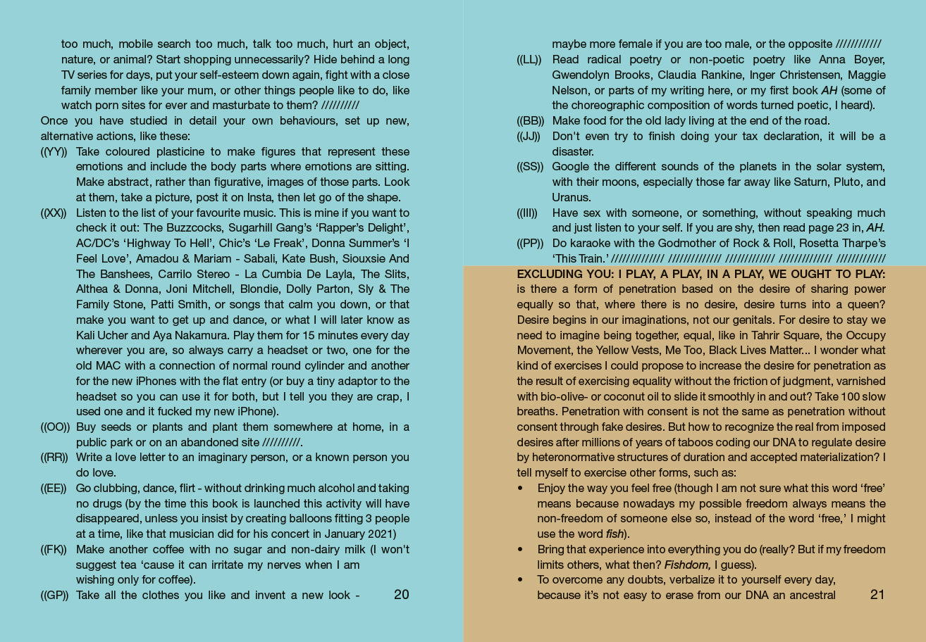 Une publication « performative » de l'auteure et chorégraphe Sara Gebran invitant le lecteur à s'immerger dans un monde d'intimité sociale.