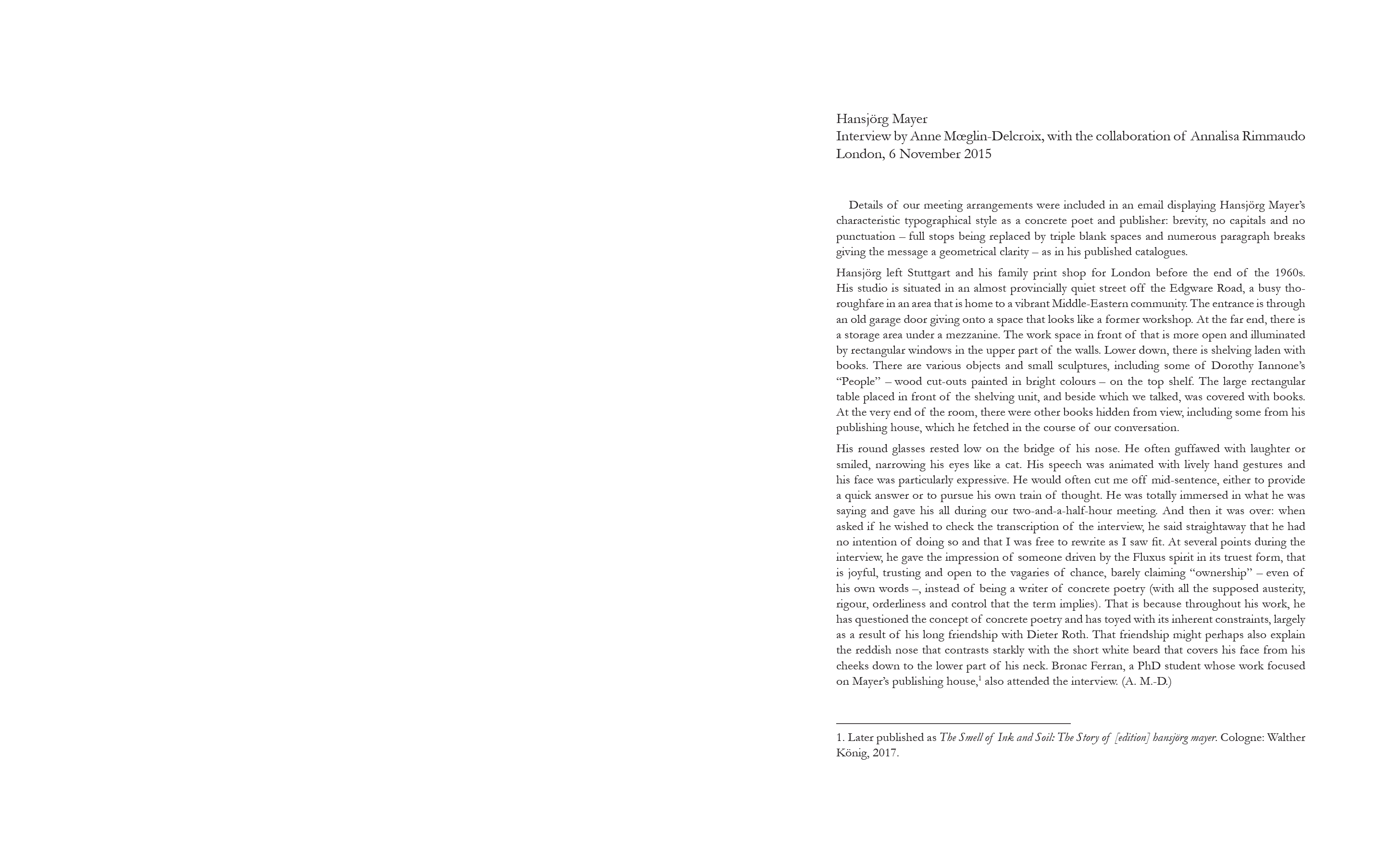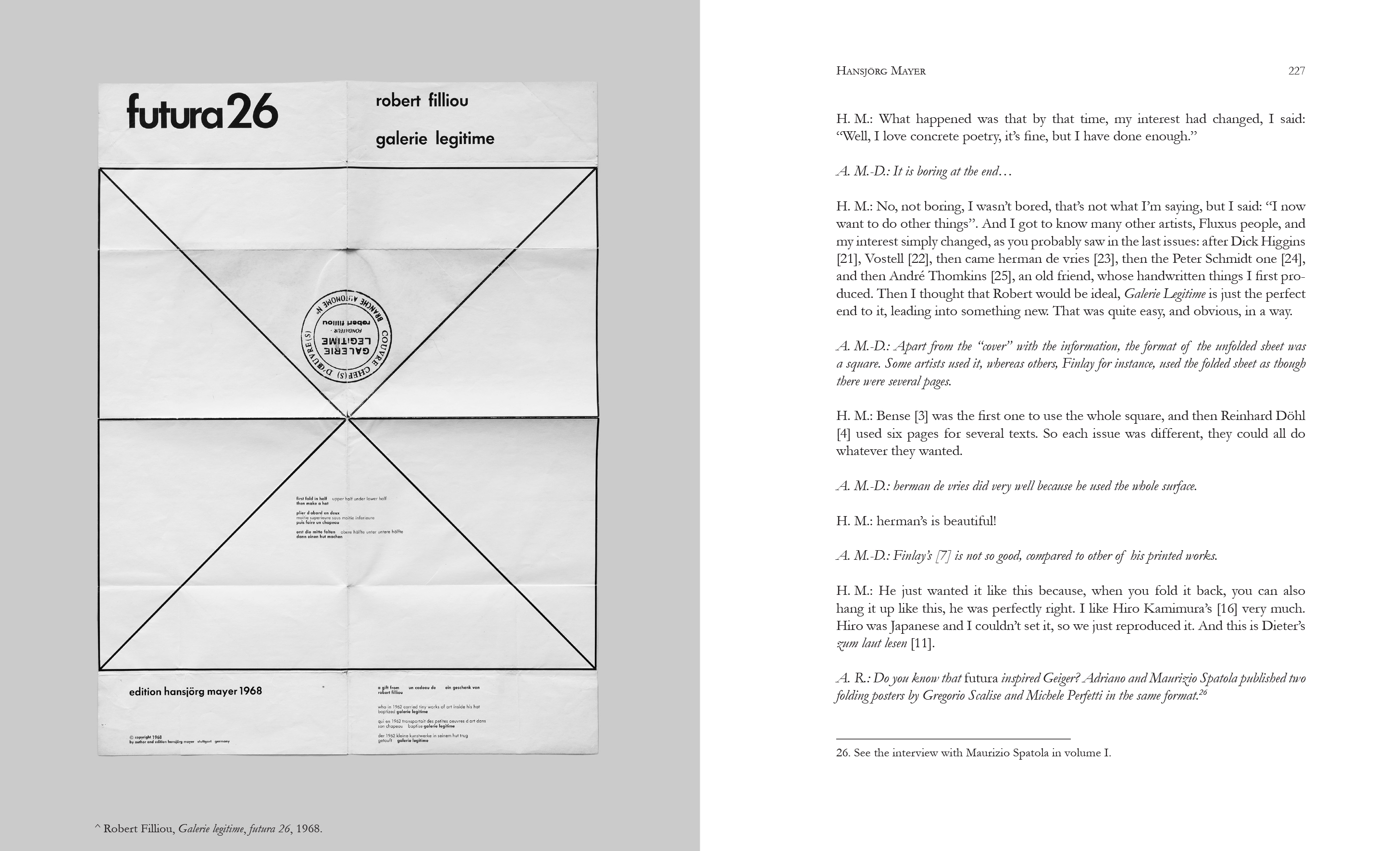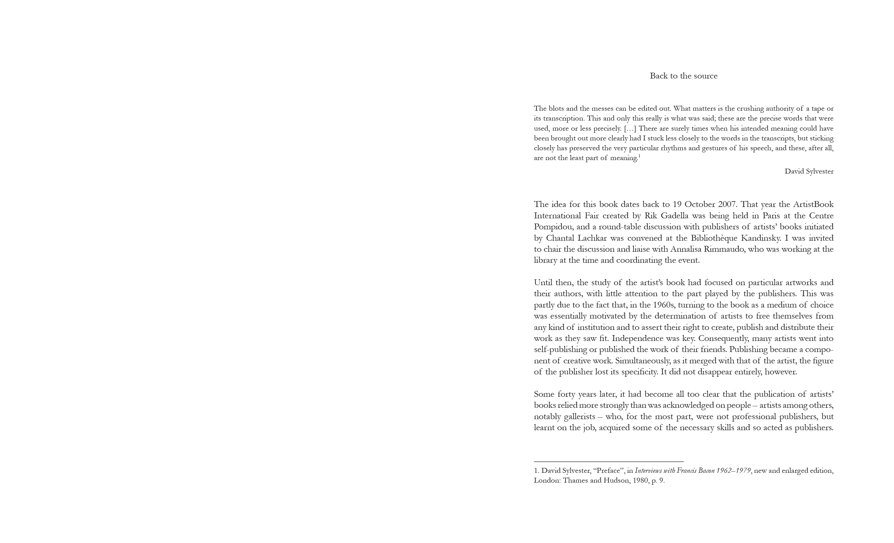 Entretiens avec un ensemble d'éditeurs pionniers du livre d'artiste : Simon Cutts, Hansjörg Mayer et Leif Eriksson.