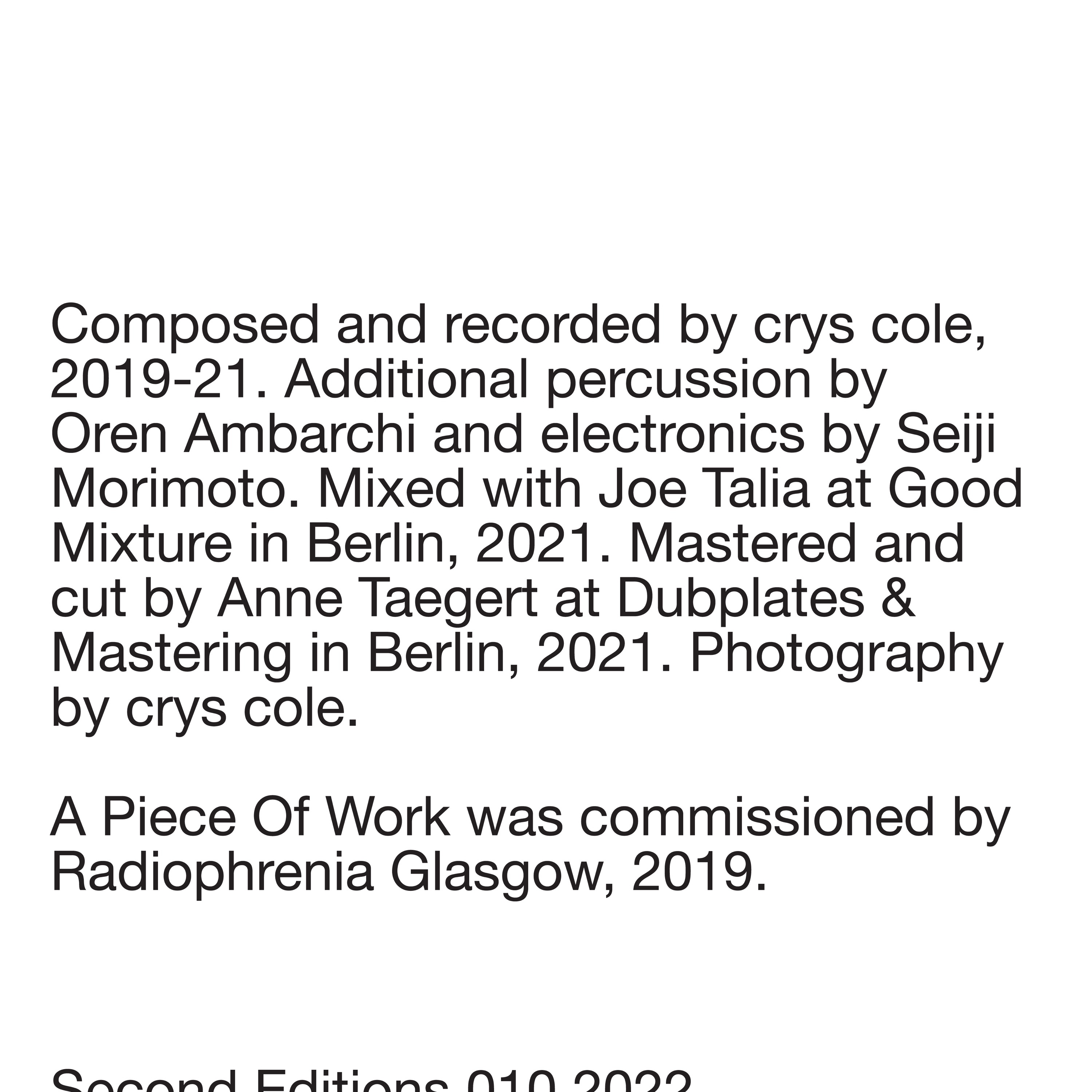 Crys Cole (née en 1976) est une artiste sonore canadienne, dont la pratique associe composition, performance et installation acoustique. Son travail se caractérise par une recherche autour de la texture, produisant des enregistrements aux sonorités subtiles et imparfaites. Crys Cole collabore régulièrement avec Oren Ambarchi et en duo avec James Rushford sous le nom d'Ora Clementi. Elle a également travaillé avec Francis Plagne, Leif Elggren, Tetuzi Akiyama, Seiji Morimoto, Jessika Kenney, David Rosenboom, Annea Lockwood, Keith Rowe, Lance Austin Olsen, Jamie Drouin, Mathieu Ruhlmann, David Behrman, Tim Olive et bien d'autres. L'artiste s'est associée aux labels Black Truffle, Penultimate Press, Ultra Eczema, caduc, Bocian, Another Timbre et Infrequency. Elle a joué et exposé au Canada, au Japon, en Australie, en Thaïlande, à Singapour, aux États-Unis, en Russie, au Royaume-Uni et dans toute l'Europe.