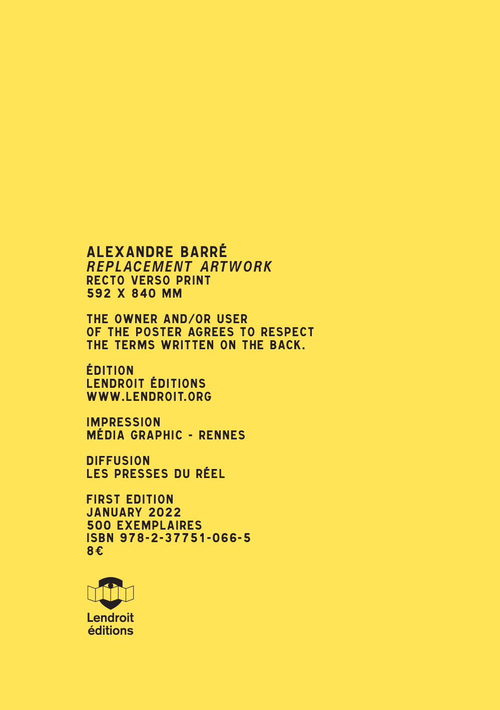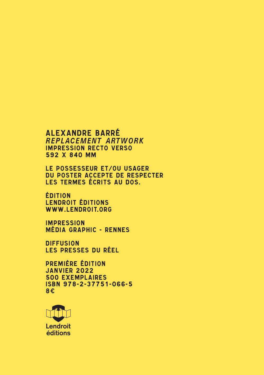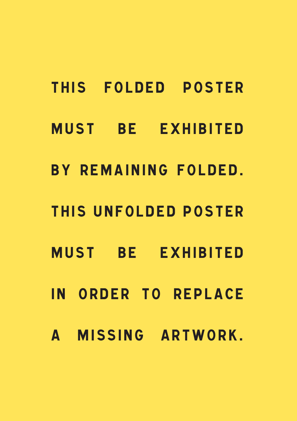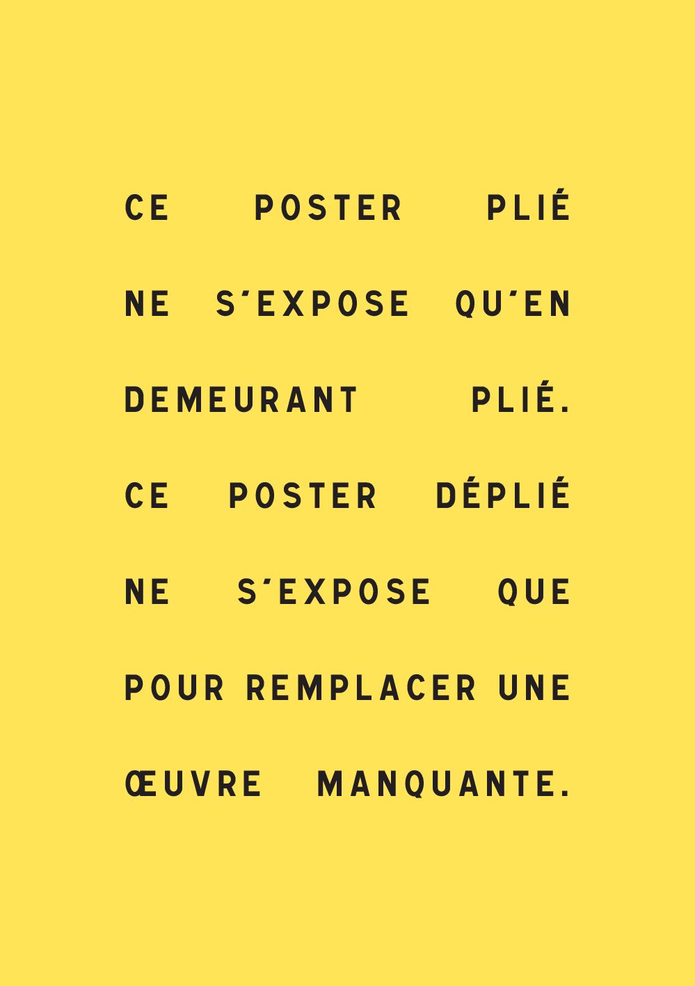 « Ce poster plié ne s'expose qu'en demeurant plié. Ce poster déplié ne s'expose que pour remplacer une œuvre  manquante.