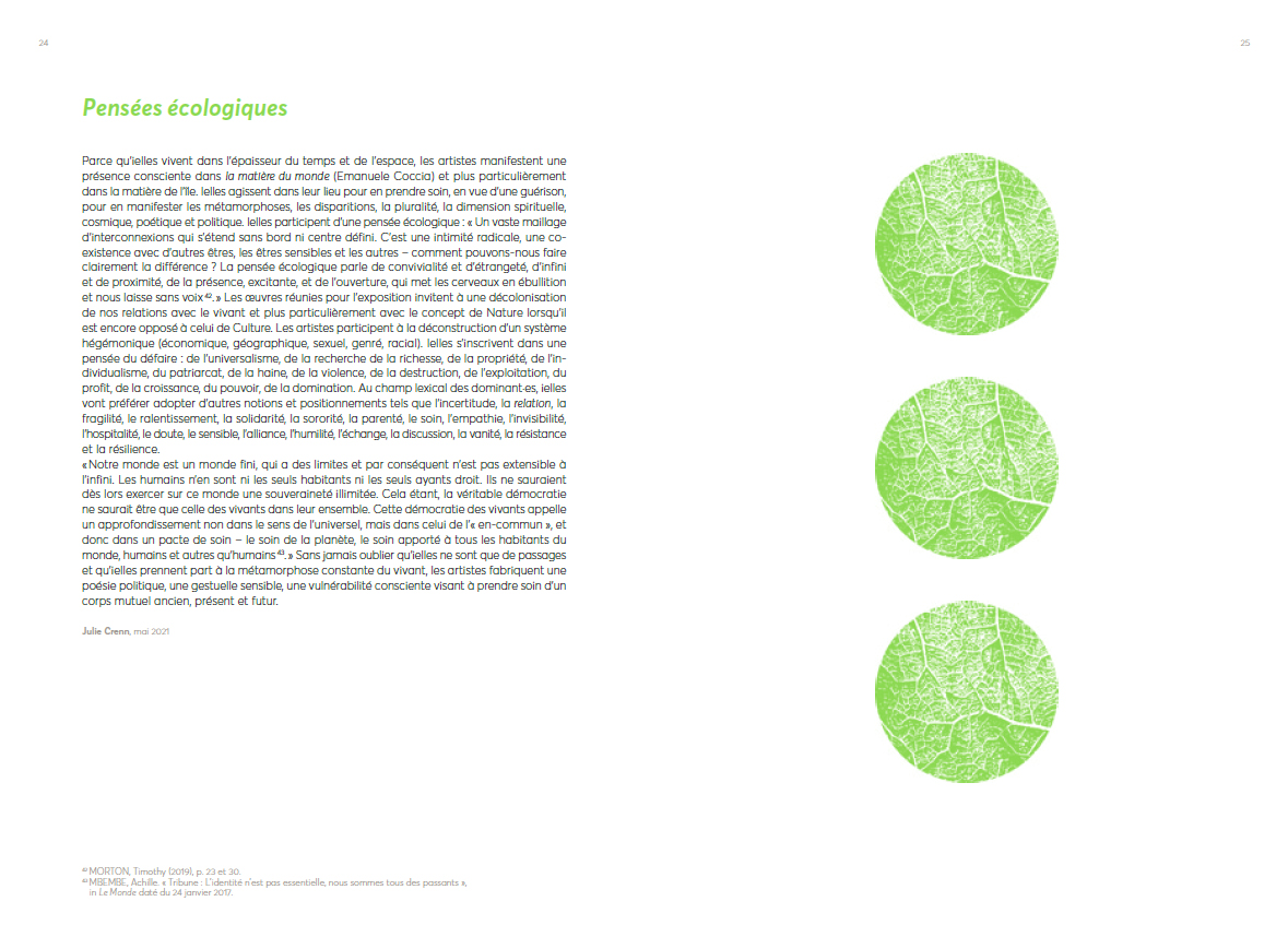 Un projet conçu par Julie Crenn autour des interactions et interdépendances inhérentes au vivant, avec les pensées écoféministes et des textes de Julie Crenn, Emanuele Coccia, Gilles Clément et Marie Thiann-Bo Morel.