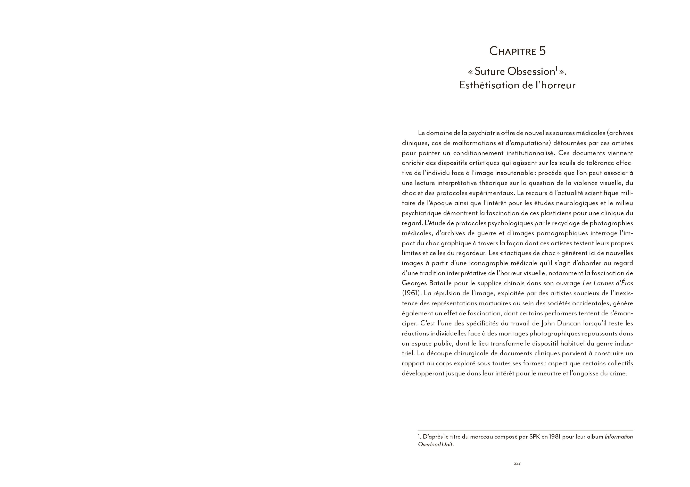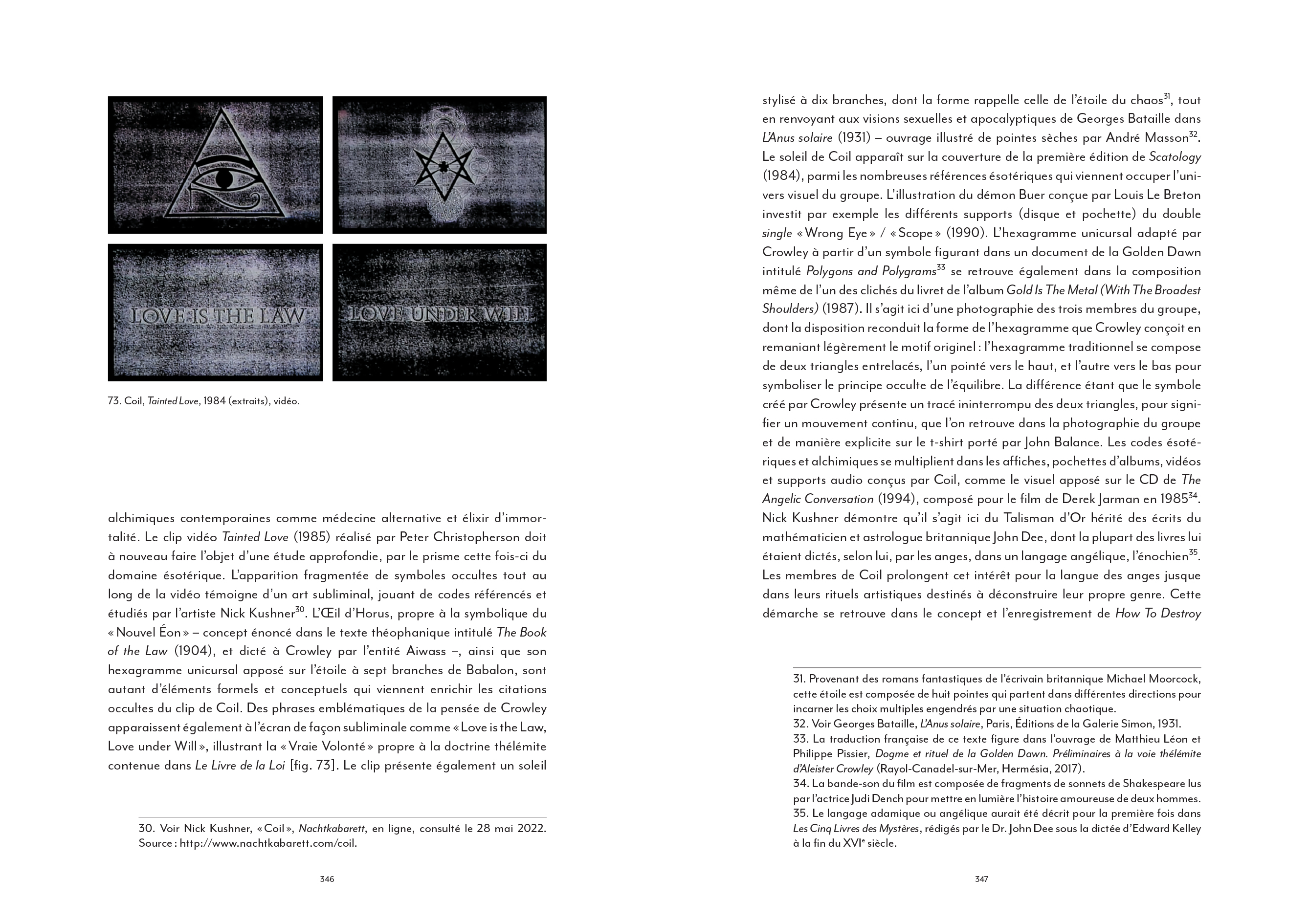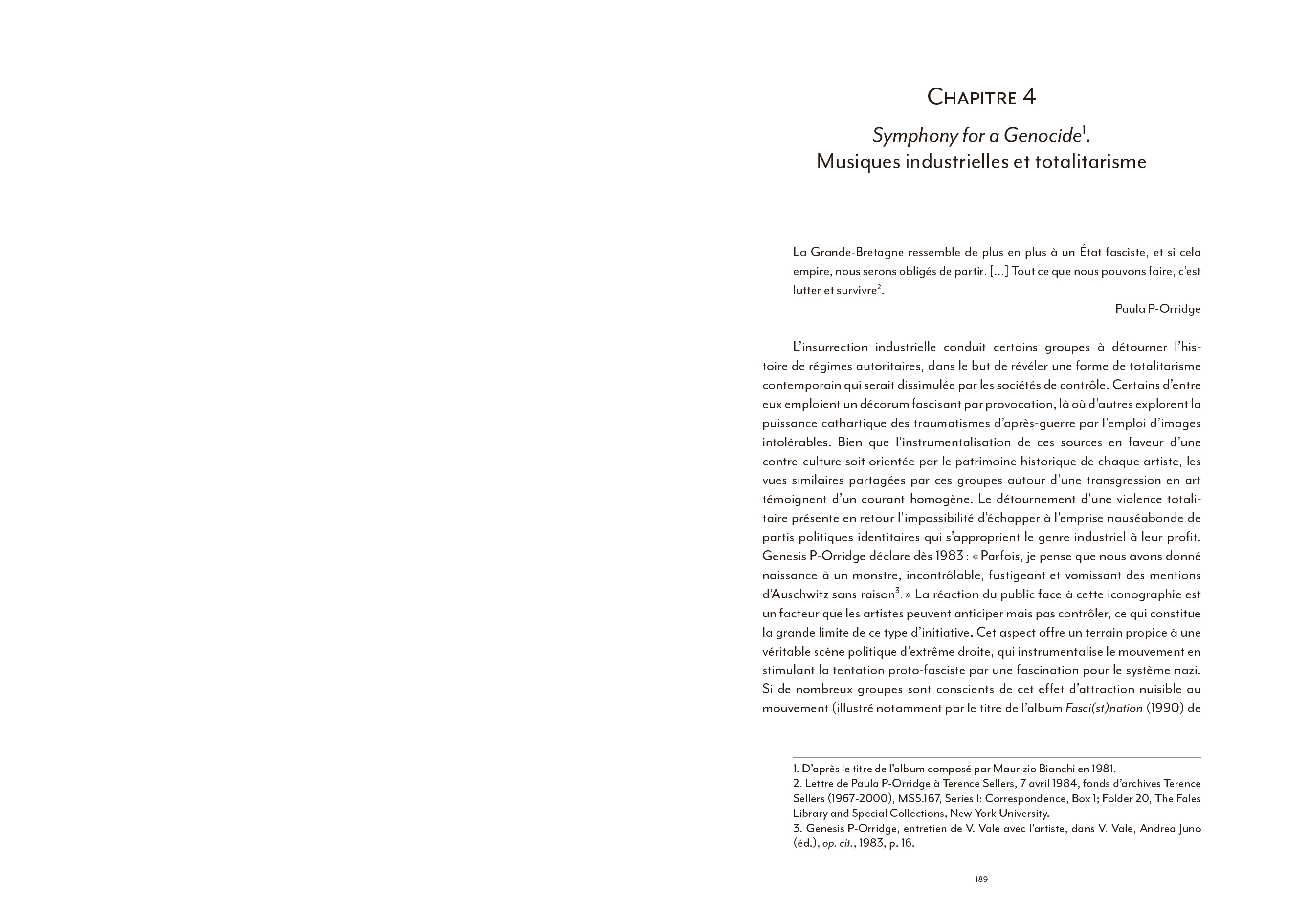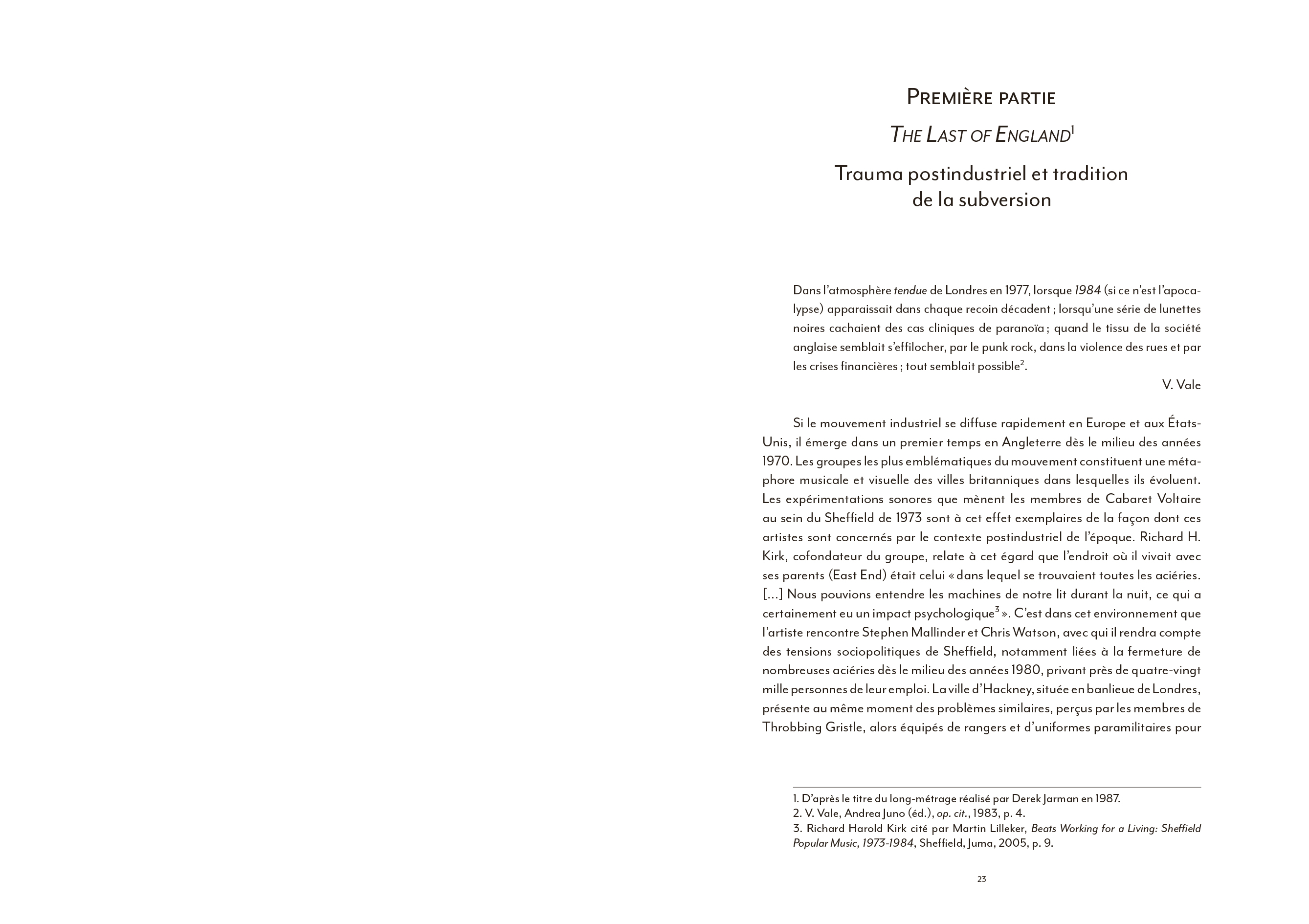 Coil ou l'art du détournement totalitaire de l'imagerie de Laibach, la musique industrielle a largement contribué à façonner une culture visuelle globale particulièrement riche. [...] Pourtant, l'apport indéniable du courant industriel à une hybridation artistique bousculée dans ses codes et ses genres à partir du début des années 70 a largement été omis des ouvrages de référence qui se sont multipliés depuis [...]. La faute sans doute à une radicalité brute, souvent trop transgressive pour pénétrer pleinement le champ de l'art contemporain. En ce sens, l'ouvrage de Nicolas Ballet comble presque une injustice : celle de relier enfin pleinement cet avant-gardisme formel brut à une histoire générale de l'art, sans éviter pour autant d'en aborder les controverses politiques ou les déviances occultes elles aussi bien lisibles.