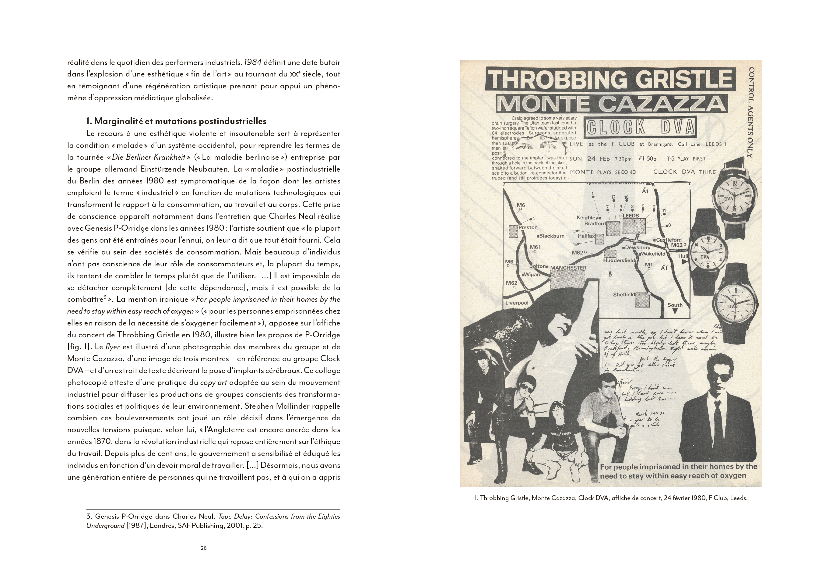 « Des photomontages de Throbbing Gristle à l'esthétique paranoïaque performative de Monte Cazazza en passant par l'ésotérisme irrationnel des pochettes de