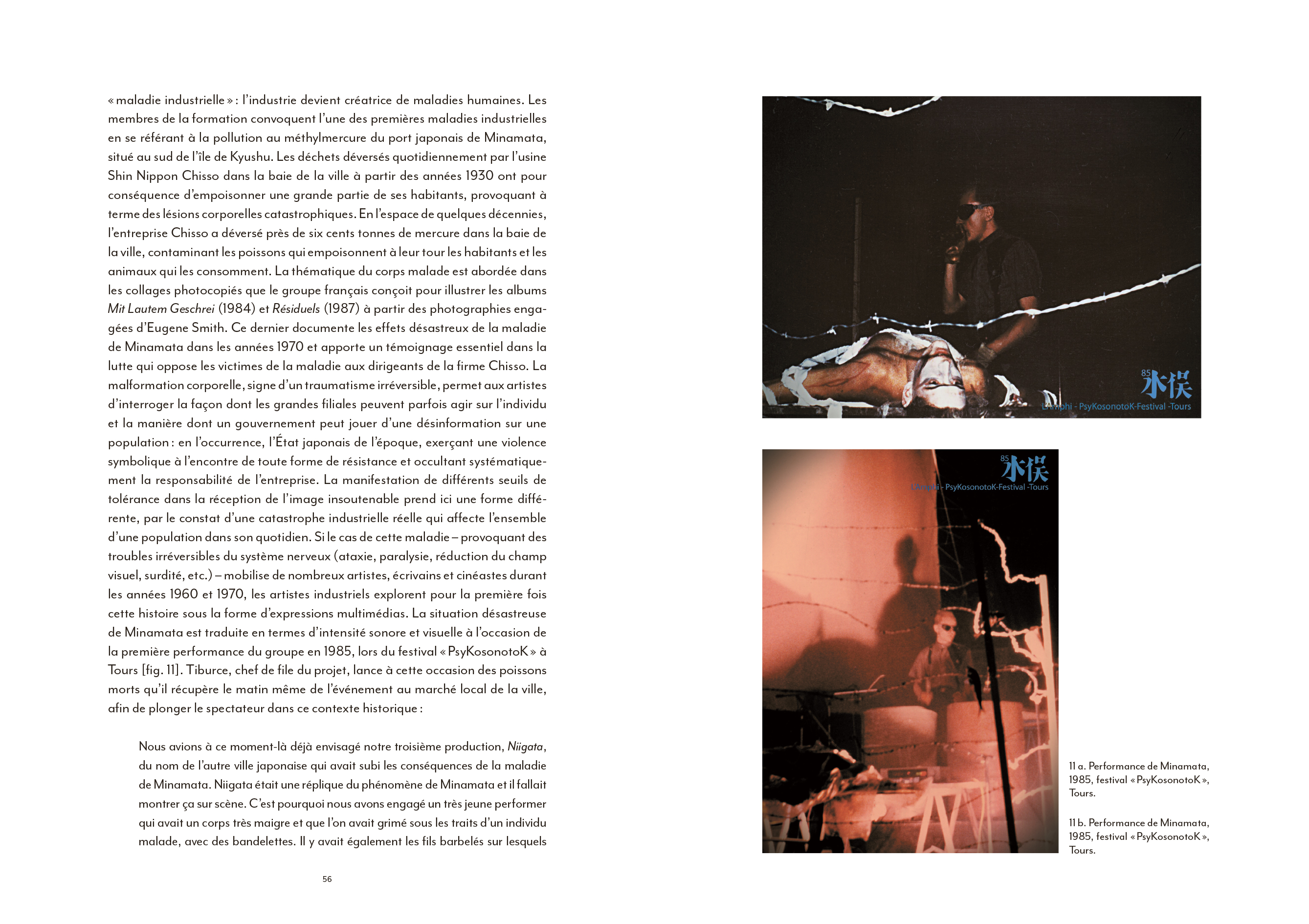 mail art, installation, film, performance, son, vidéo), dans un dialogue étroit avec l'héritage de la modernité et sous l'emprise croissante des technologies. Ce phénomène britannique amorce un mouvement qui connaît un grand développement en Europe, aux États-Unis et au Japon durant les années 1980. Élaboration de synthétiseurs, manipulation et transformation de sons enregistrés issus de bandes audio, recyclées ou conçues par les artistes, les expérimentations sonores déployées par les groupes industriels viennent enrichir un éventail de productions visuelles radicales, prenant leurs sources dans les utopies modernistes de la première partie du XXe siècle. Les sons saturés et dissonants se traduisent en images abrasives, altérées par un détournement des techniques de reprographie (