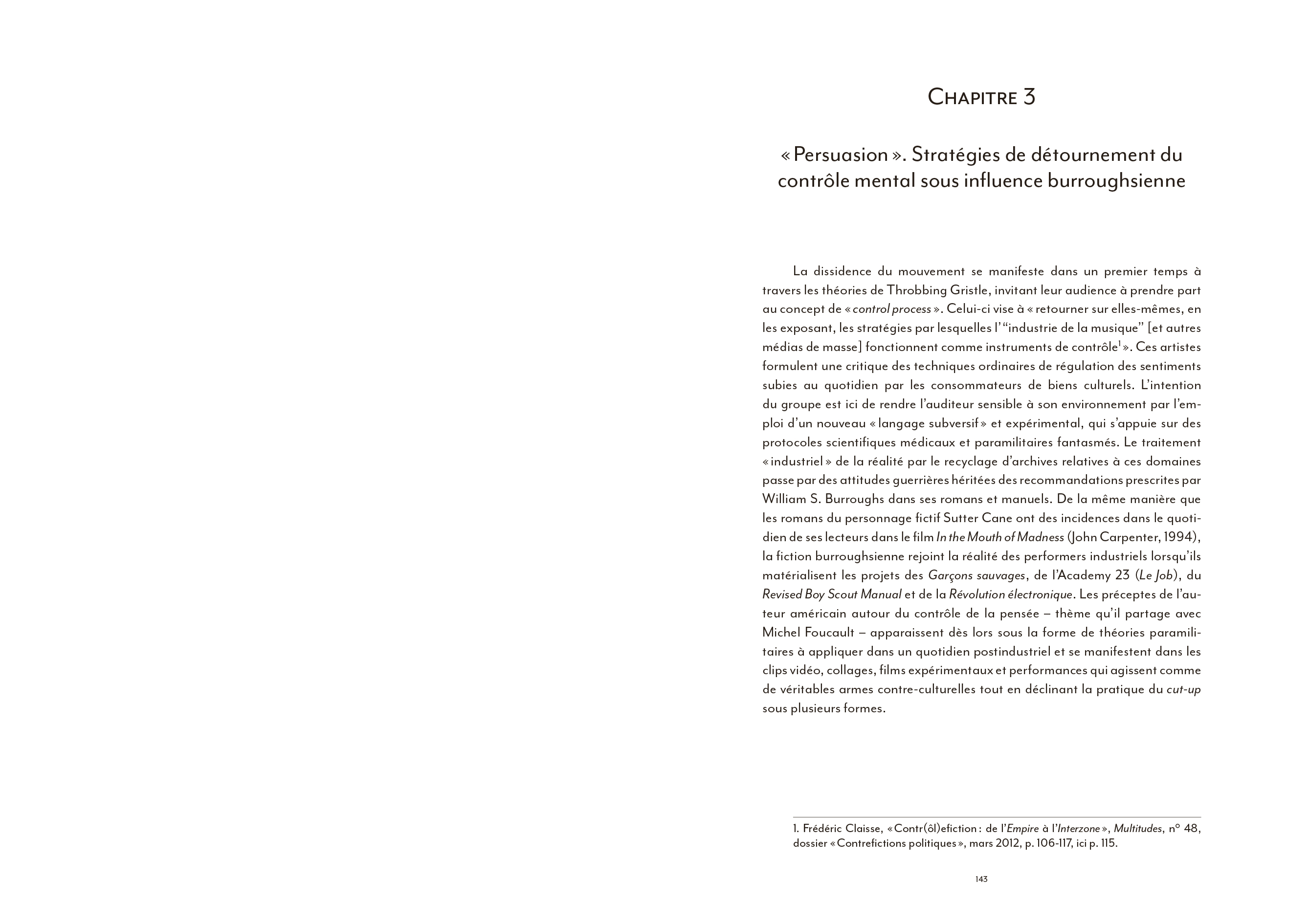 Dans ses recherches denses, fouillées et brillantes, l'auteur se concentre sur des productions réalisées "par une communauté de musiciens, performers, plasticiens et vidéastes qui ont évolué en marge des circuits institutionnels de l'art".