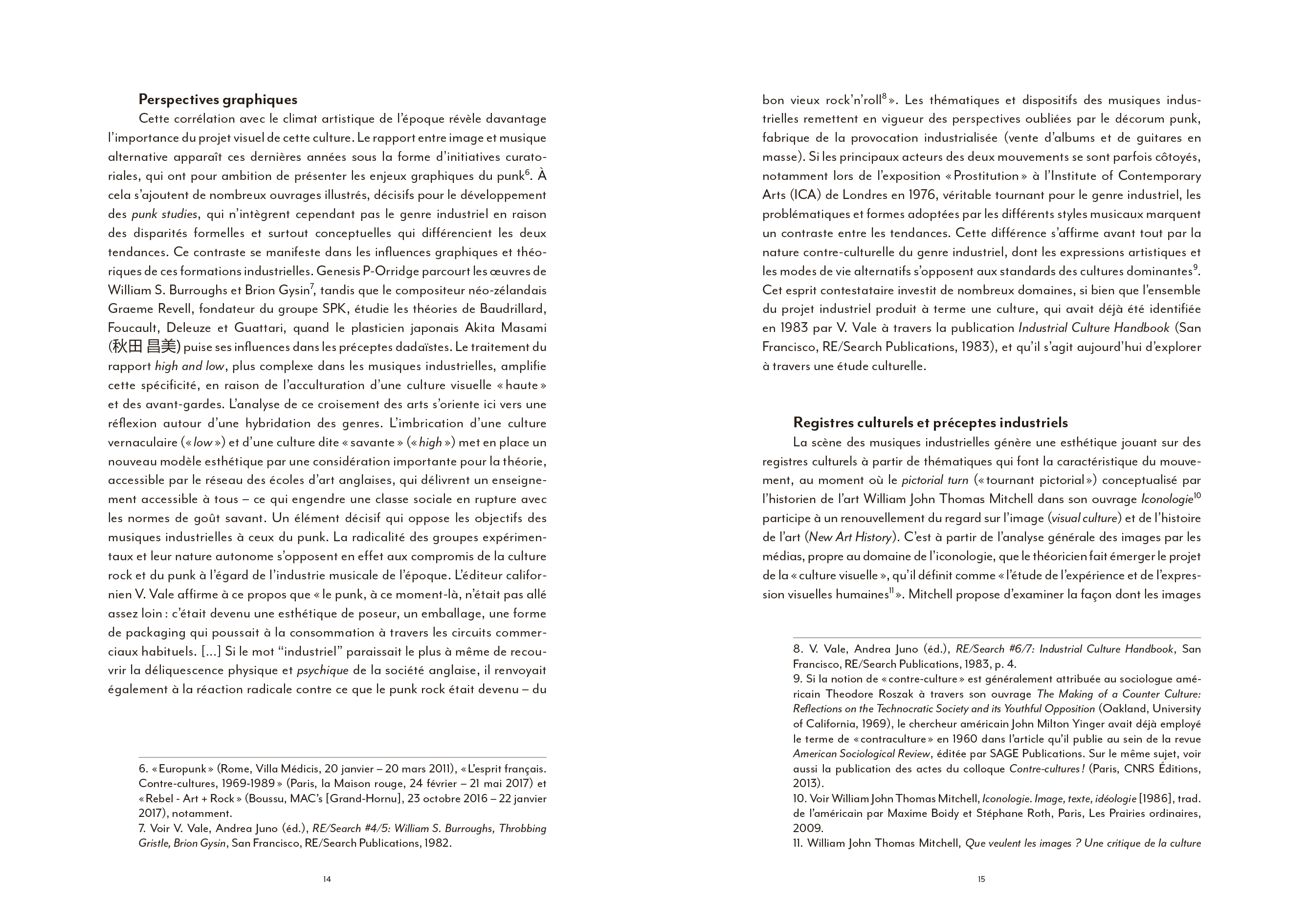 Le courant des musiques industrielles, apparu au milieu des années 1970, loin de s'en tenir à un phénomène d'expérimentation sonore a produit en quelques années une culture visuelle globale croisant de nombreuses pratiques artistiques (collage,