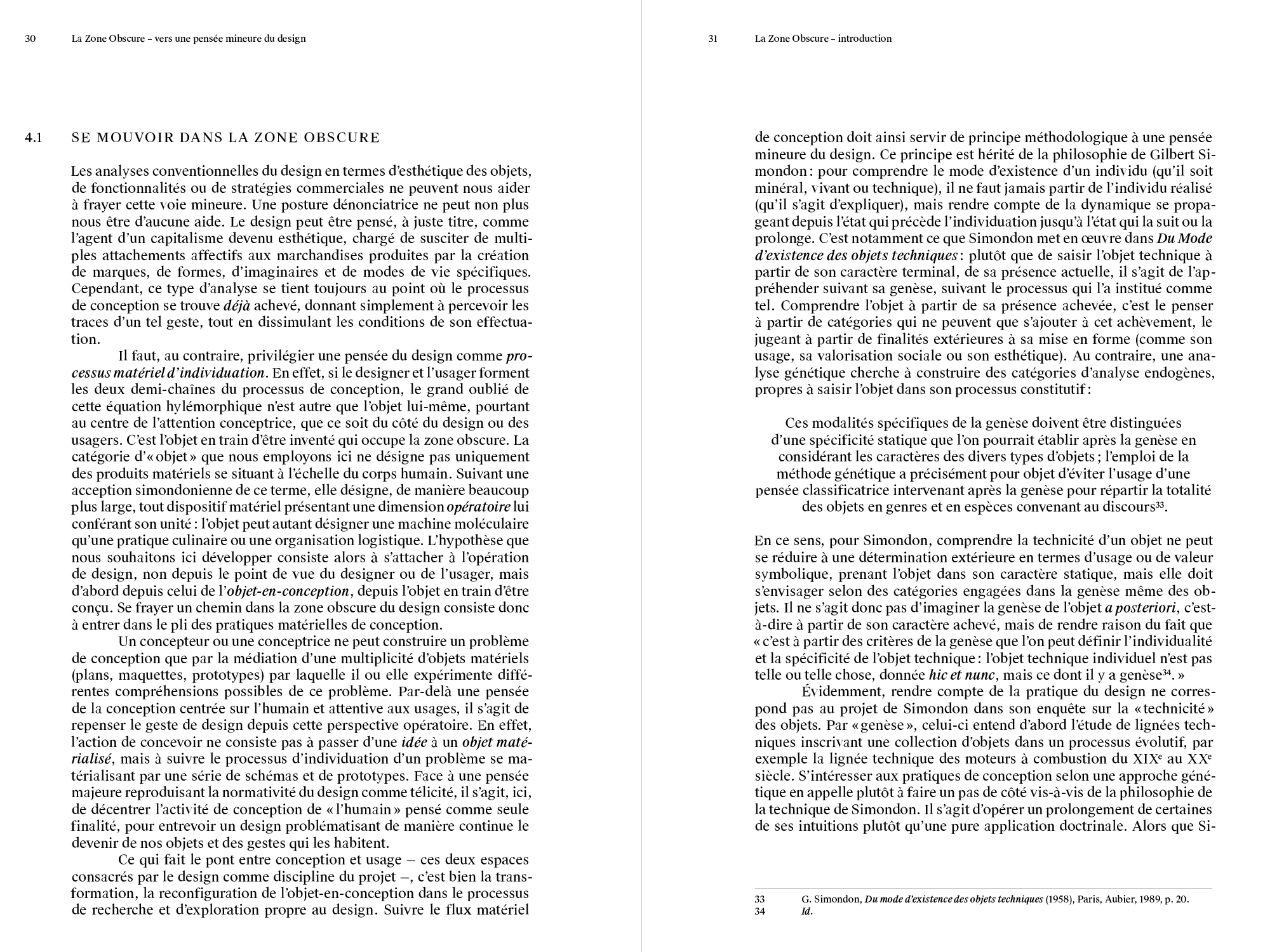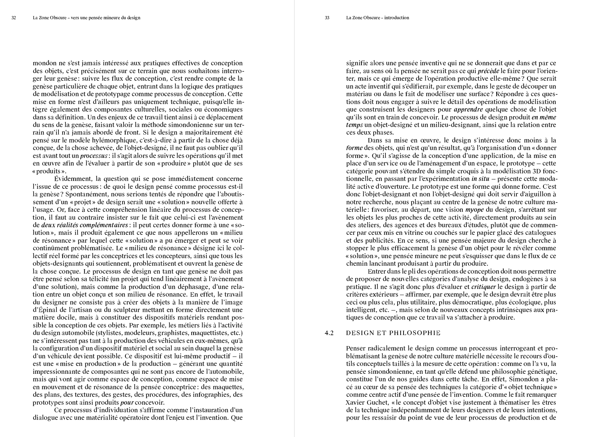LZO) de Vincent Beaubois interroge la discipline du design à l'aune de la conceptualité de Gilbert Simondon, l'un des rares philosophes français à s'être très tôt intéressé aux objets techniques (cf. son fameux ouvrage